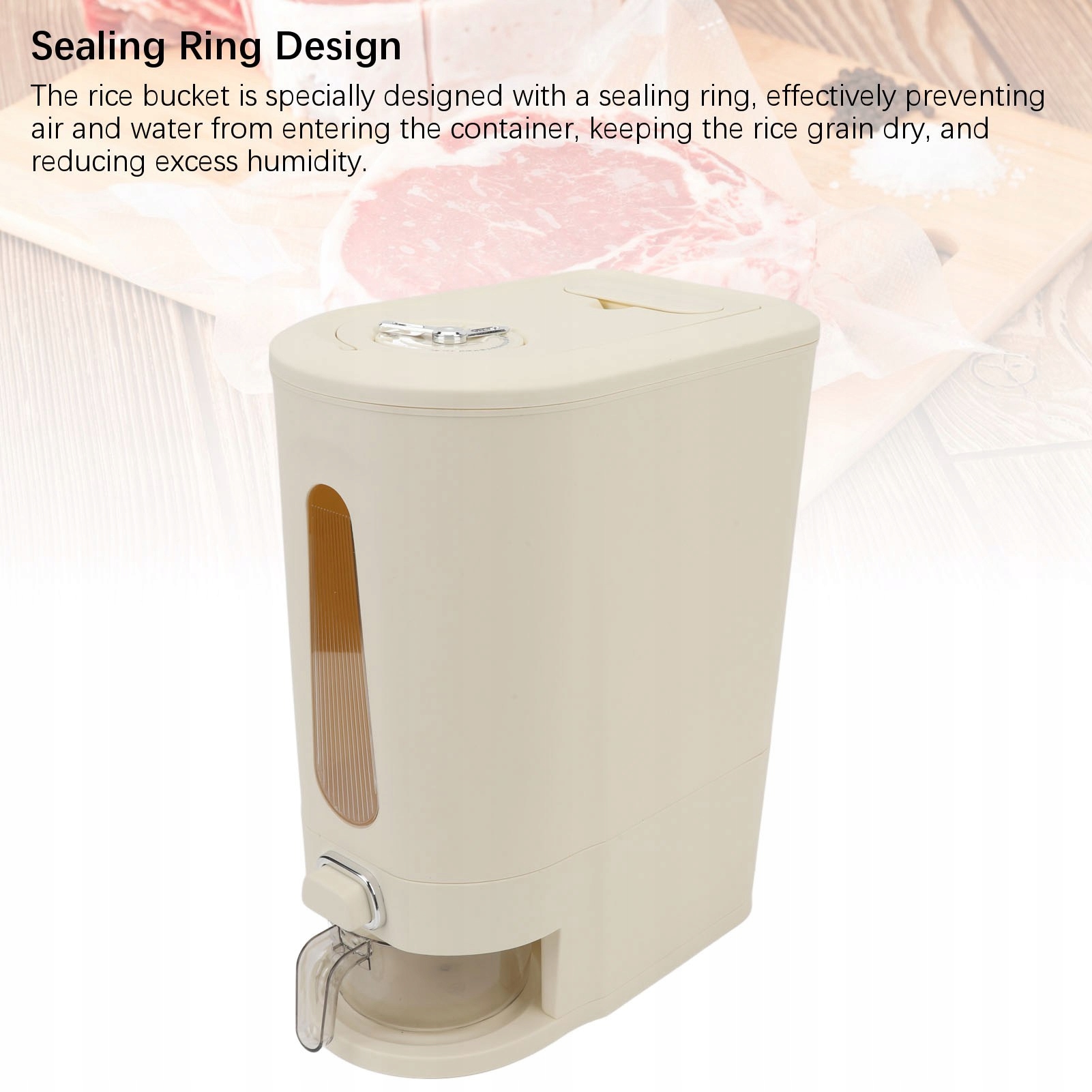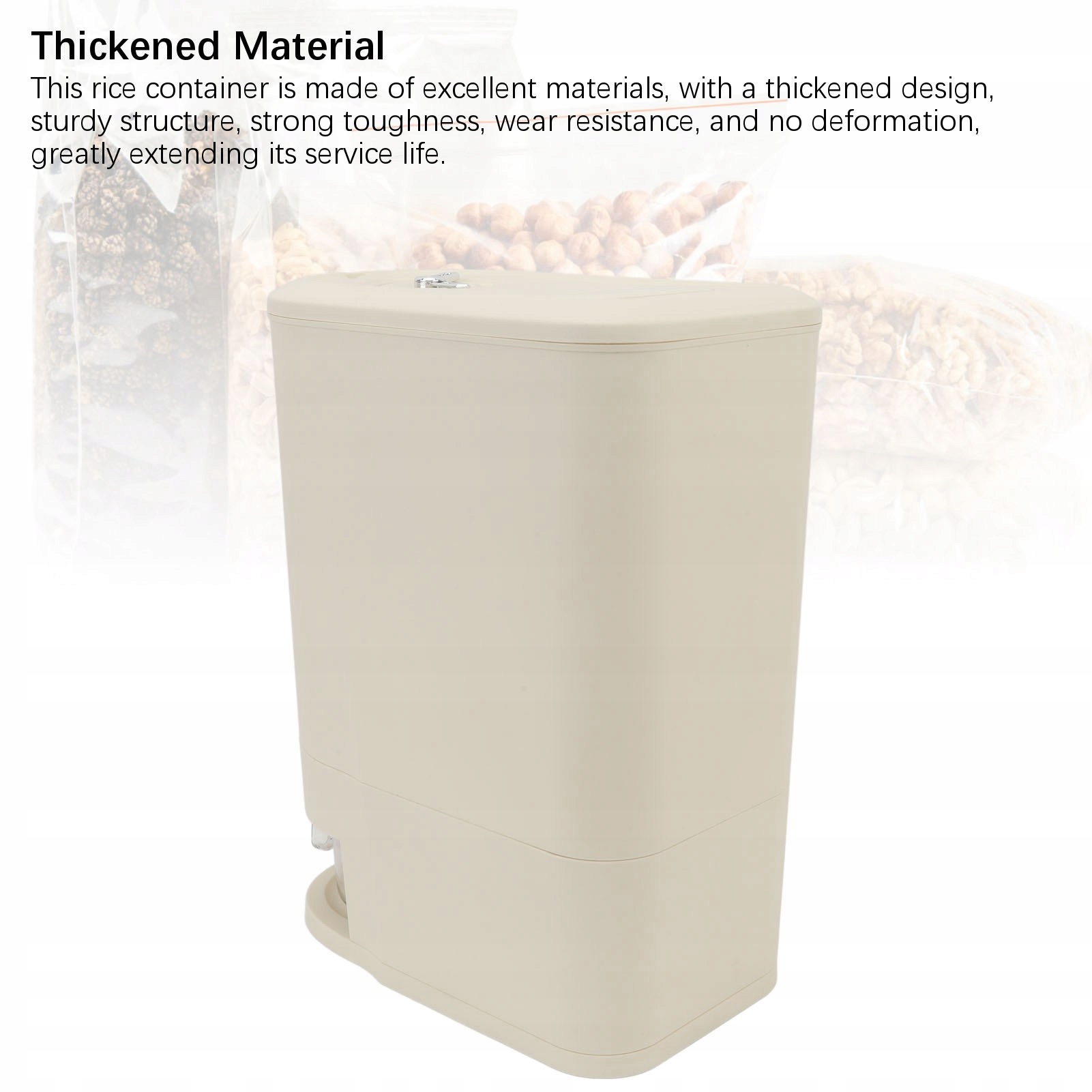 1. Висока потужність: це відро для рису має велику потужність, яке може вмістити велику кількість рисових зерен, безмовно зберігати їжу у вашому домогосподарстві, що робить її комфортною та практичною. Дизайн герметичного кільця: відро рису було спеціально розроблене з ущільнювальним кільцем, що фактично запобігає потраплянню повітря та води в контейнер, зберігаючи зерно рису в сухість і зменшуючи надмірну вологість. Тип преси: Цей дозатор з великою ємністю рис оснащений кнопкою, яка дозволяє ATWE та швидкий збір рису, зручний контроль кількості рису та значно покращує продуктивність. Потовщена речовина: Цей контейнер для рису виготовлений з ідеальних матеріалів, має потовщується структуру, тверду структуру, високу міцність, стійкість до зносу та відсутність зневоднення, яка суттєво тягне своє життя. Безпечний та гігієнічний: відро для зберігання рису має тісну структуру, яка ефективно заважає входити в іноземне тіло, утримувати рис в чистоті та гігієні, забезпечуючи здоров'я та безпеку їжі в домогосподарстві.