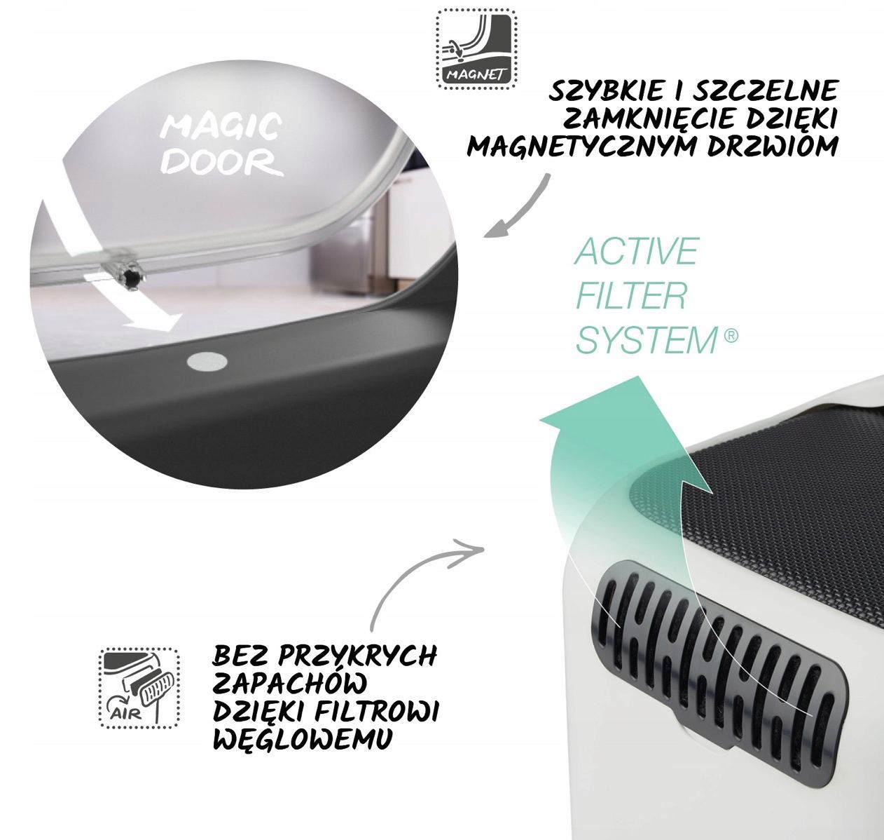 Чи думали ви коли-небудь про дизайнерський ящик для сміття, який вам не потрібно було б ховати в найдальшому кутку вашої квартири? Тоді ми хочемо познайомити вас із закритим лотком Biala від Rotho Mypet! Його перевагою є не тільки зовнішній вигляд, лоток легко миється, а завдяки вугільному фільтру не виділяє неприємних запахів. Клапан надійно закривається на магніт. Чохол можна легко зняти однією рукою.