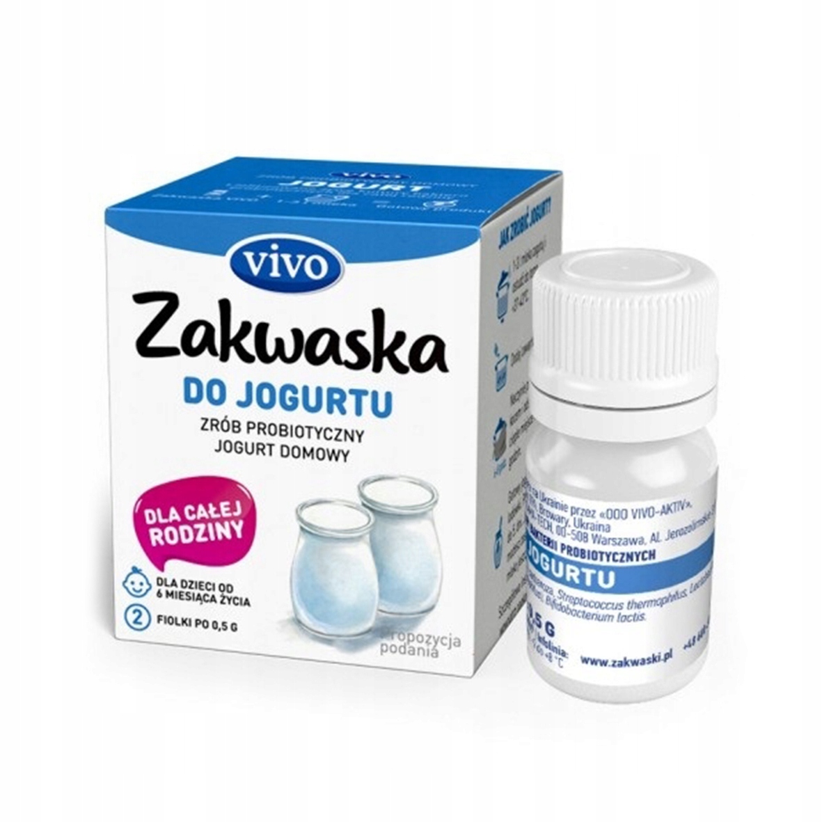 Натуральний йогурт, приготовлений із Zakwaski FOR YOGURT VIVO, — це найбільш класичний йогурт із чудовим смаком свіжого ряжанка. Характеризується найвищою свіжістю та високою активністю бактеріальних культур. Приготований згідно з інструкцією, не містить сухого молока, загусників та підсилювачів смаку, тому у нас натуральний йогурт. Закваска VIVO YOGURT також рекомендована для сквашування рослинних напоїв.