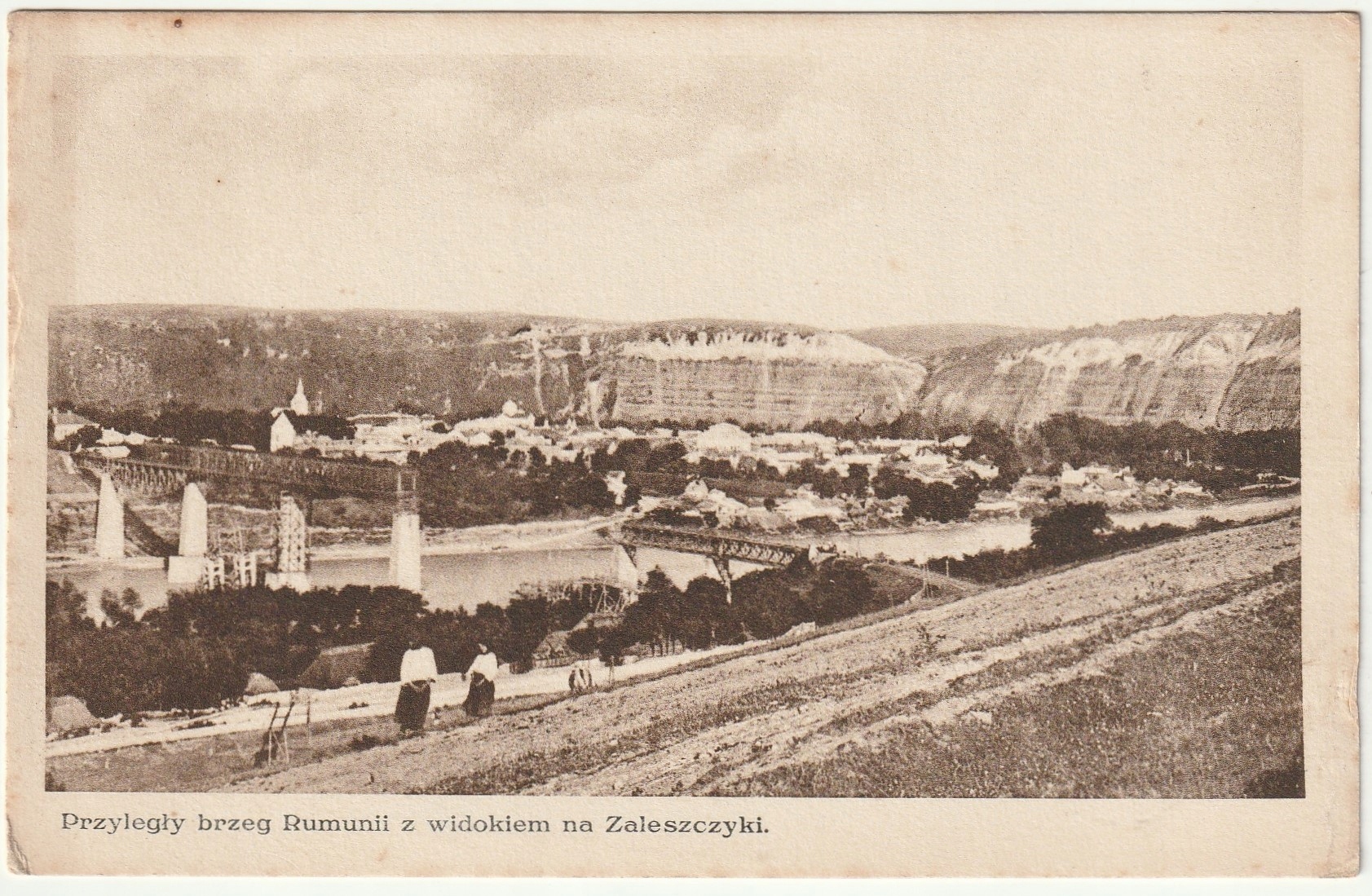 ЗАЛЕЩИКИ (у Другій Речі Посполитій, ТАРНОПОЛЬСЬКЕ воєводство). Кордон з Румунією, видано книгарнею Якова Кофлера, Залещики, до 1939 р., ч/б, злегка пожовтіння.