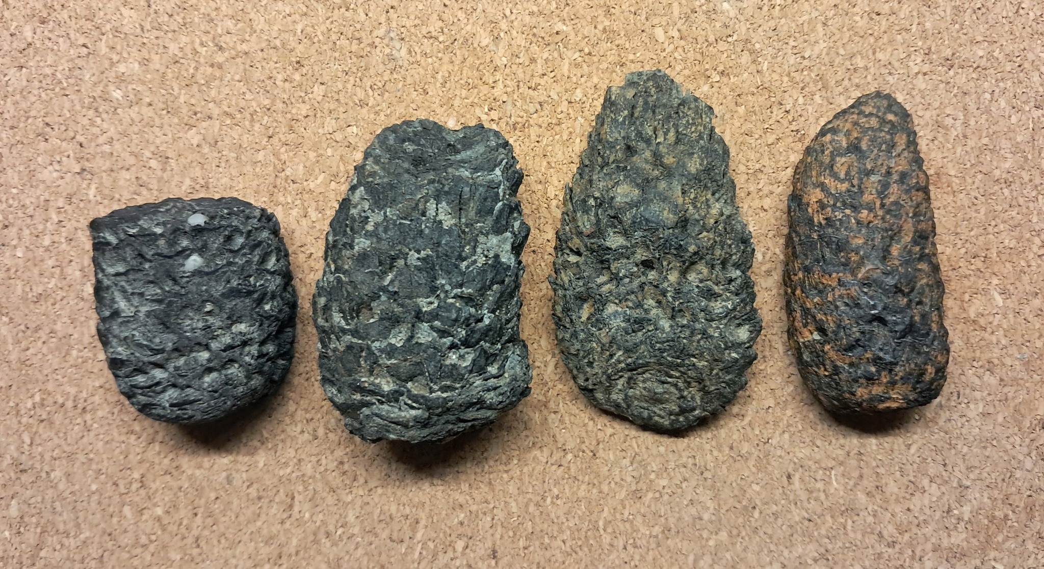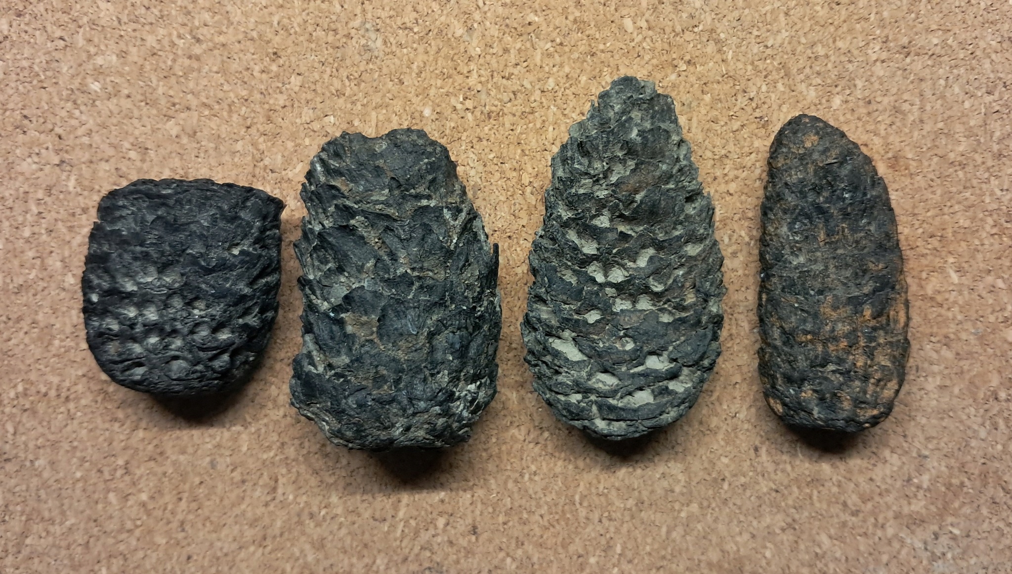Залишки пізньоміоценового лісу, шишки + уламки дерева