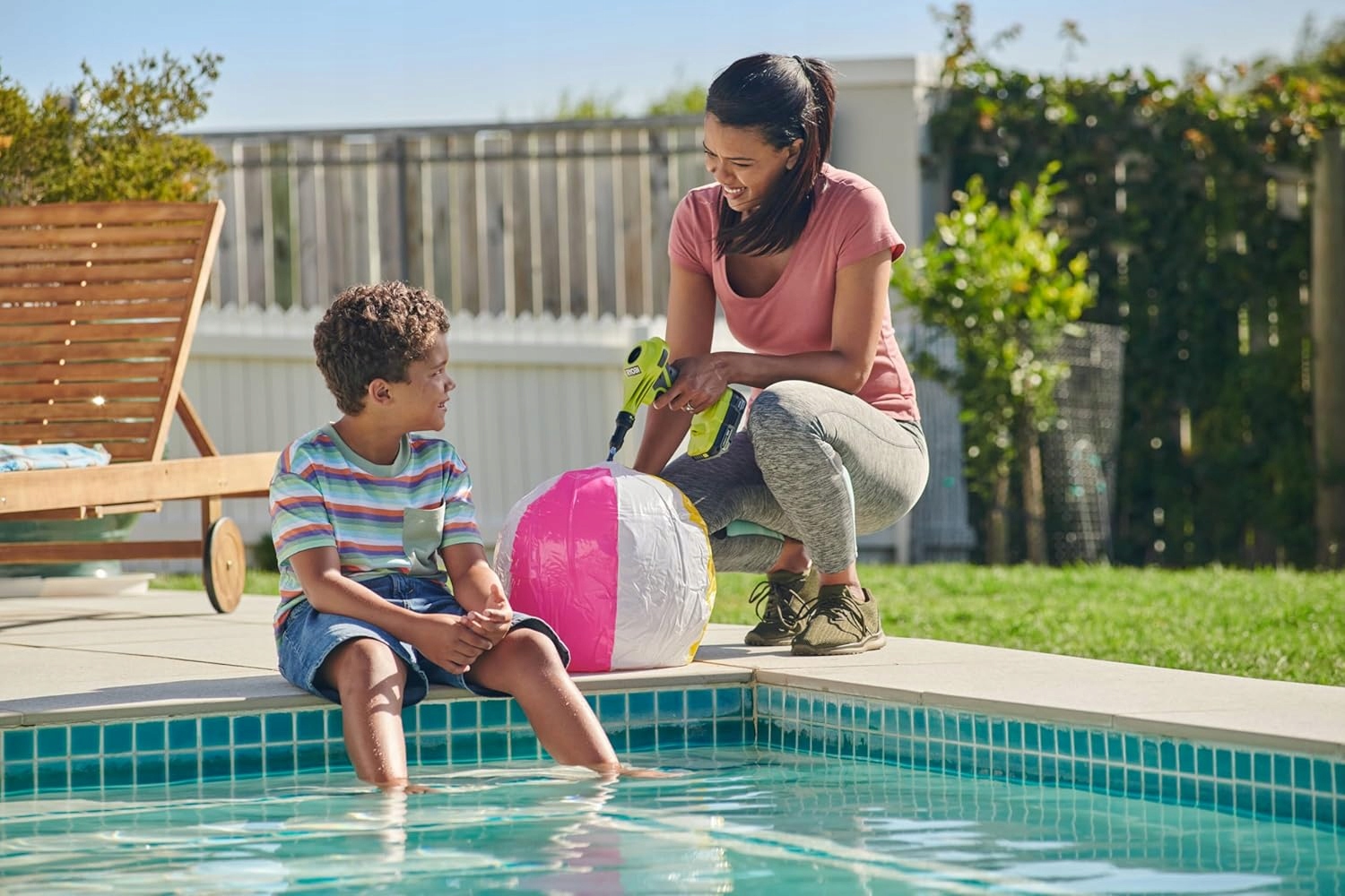 ідеально підходить для перекачування матраців, іграшок для басейну та інших великих предметів - а також для швидкого водовідведення повітря для легкого зберігання. Ідеально підходить для дому, саду та відпочинку.