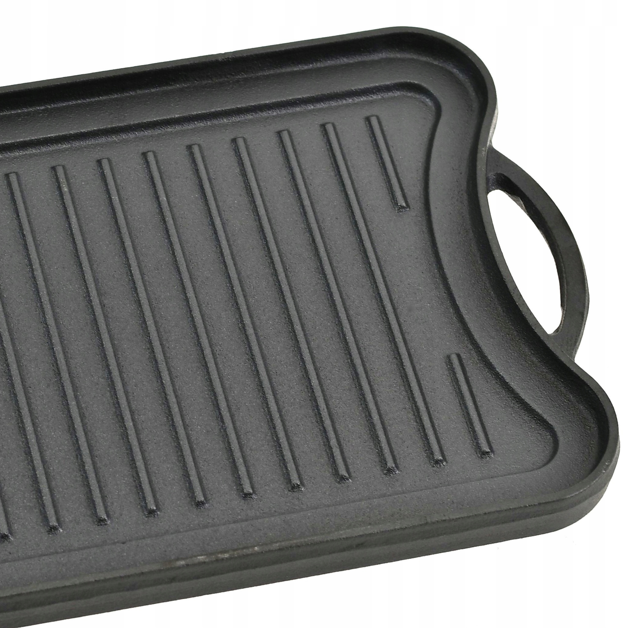 One page is smooth , ideal for frying eggs, sleeping eggs and delicate Fish , the other side of the ribbed, excellent for meat grilling