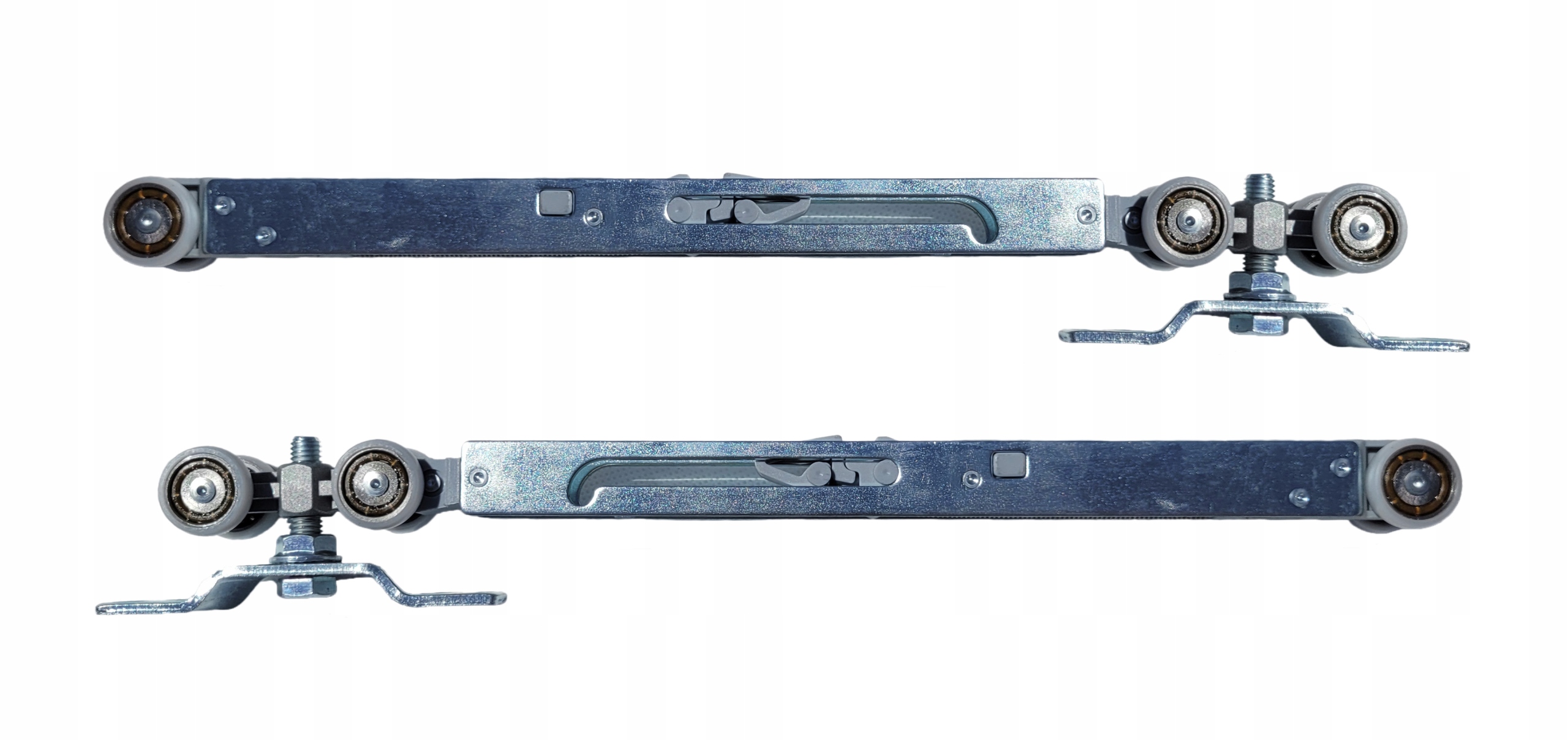 В комплекті зі стандартними візками без доводчиків у варіанті з рейкою, що кріпиться до стелі та до стіни.