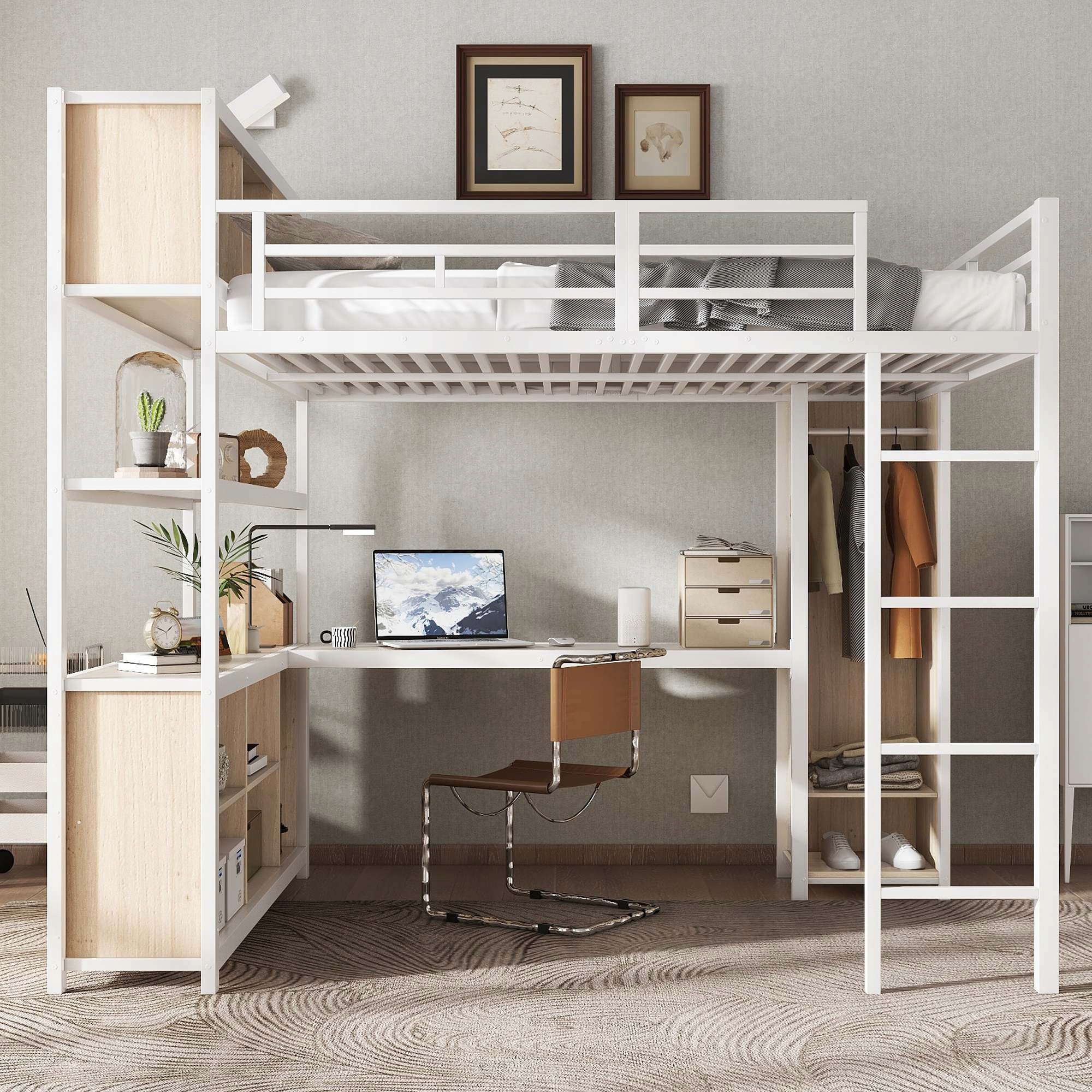 - Верхнє ліжко з зберіганням та побудованим гардеробом: верхнє ліжко пропонує додаткове місце для зберігання постільних білизних або опудалів тварин; Вбудований гардероб забезпечує місце для одягу та аксесуарів. 4
