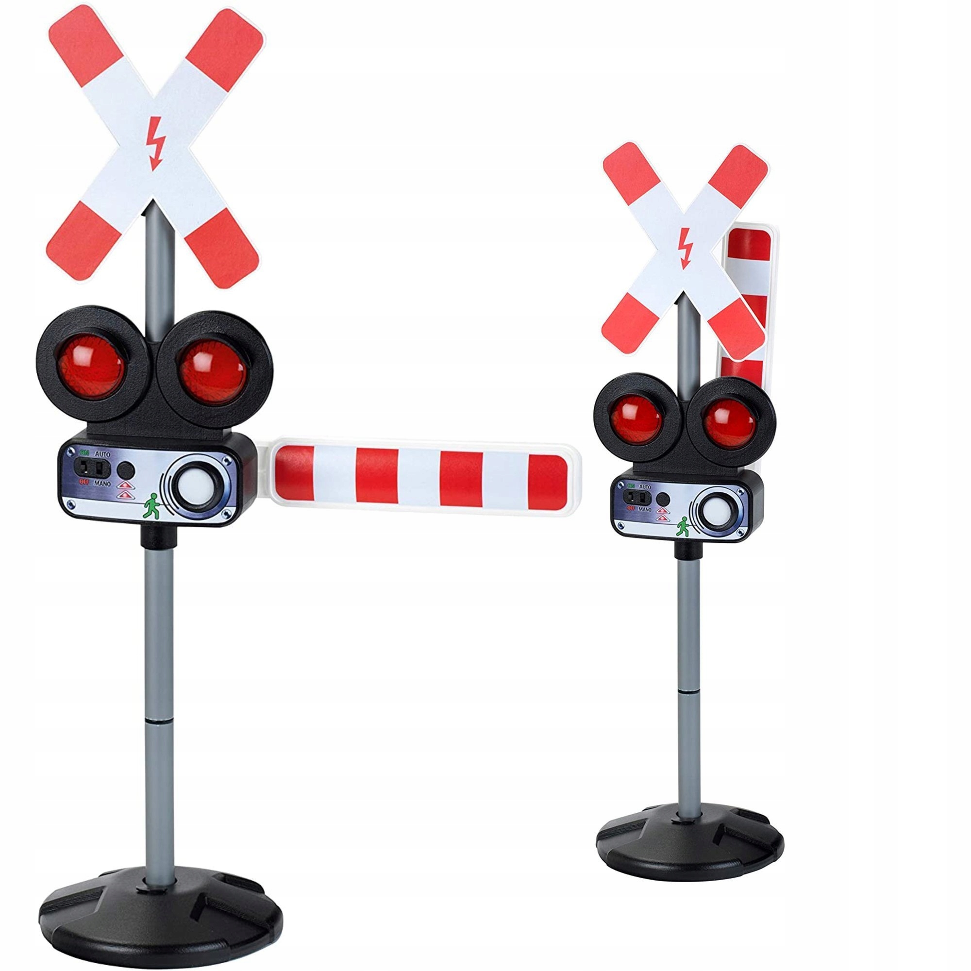 Дорожній знак показує попереджувальний знак про залізничний переїзд. Інтерактивний знак працює як справжній і, безсумнівно, принесе велике задоволення та навчить вас, як залишатися безпечним на вулиці. Вивіска працює вручну та за допомогою датчика руху.