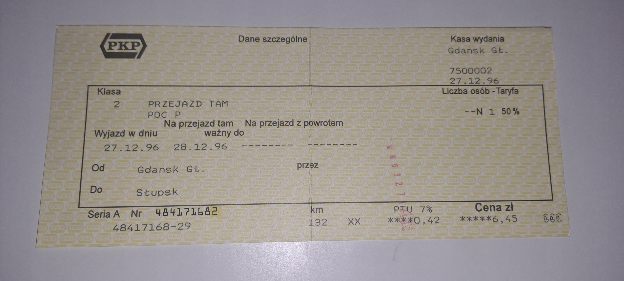 ЗАЛІЗНИЧНИЙ КВИТОК ПКП ГДАНСЬК - СТОВПСЬК