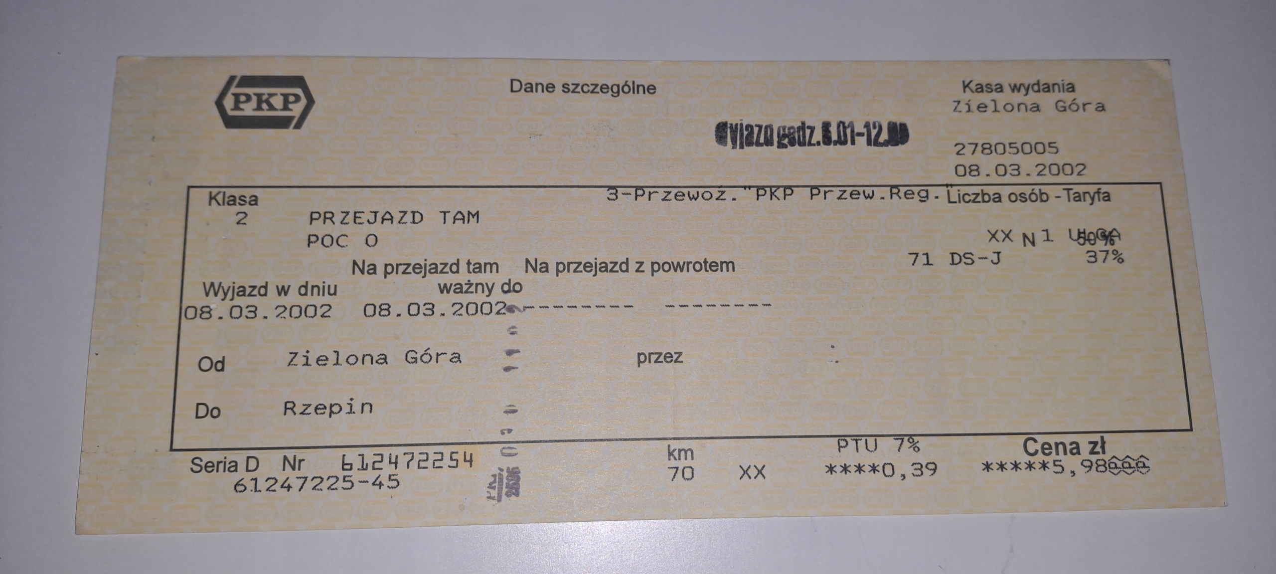 ЗАЛІЗНИЧНИЙ КВИТОК ПКП ЗЕЛЕНА ГОРА - РІПІН / РЕКЛАМА