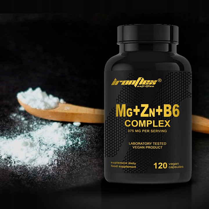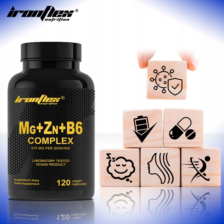 Ironflex Mg+Zn+B6 комплекс -це комбінація трьох ключових інгредієнтів у добре абсусних формах. Він містить магній (375 мг) у вигляді цитрату, який підтримує м’язи, нервову систему та здоров'я кісток. цинк (15 мг) у вигляді цитрату підтримує імунітет, регенерацію та підтримку нормального рівня тестостерону. 4 Це всебічна підтримка активної та догляду за здоров’ям.