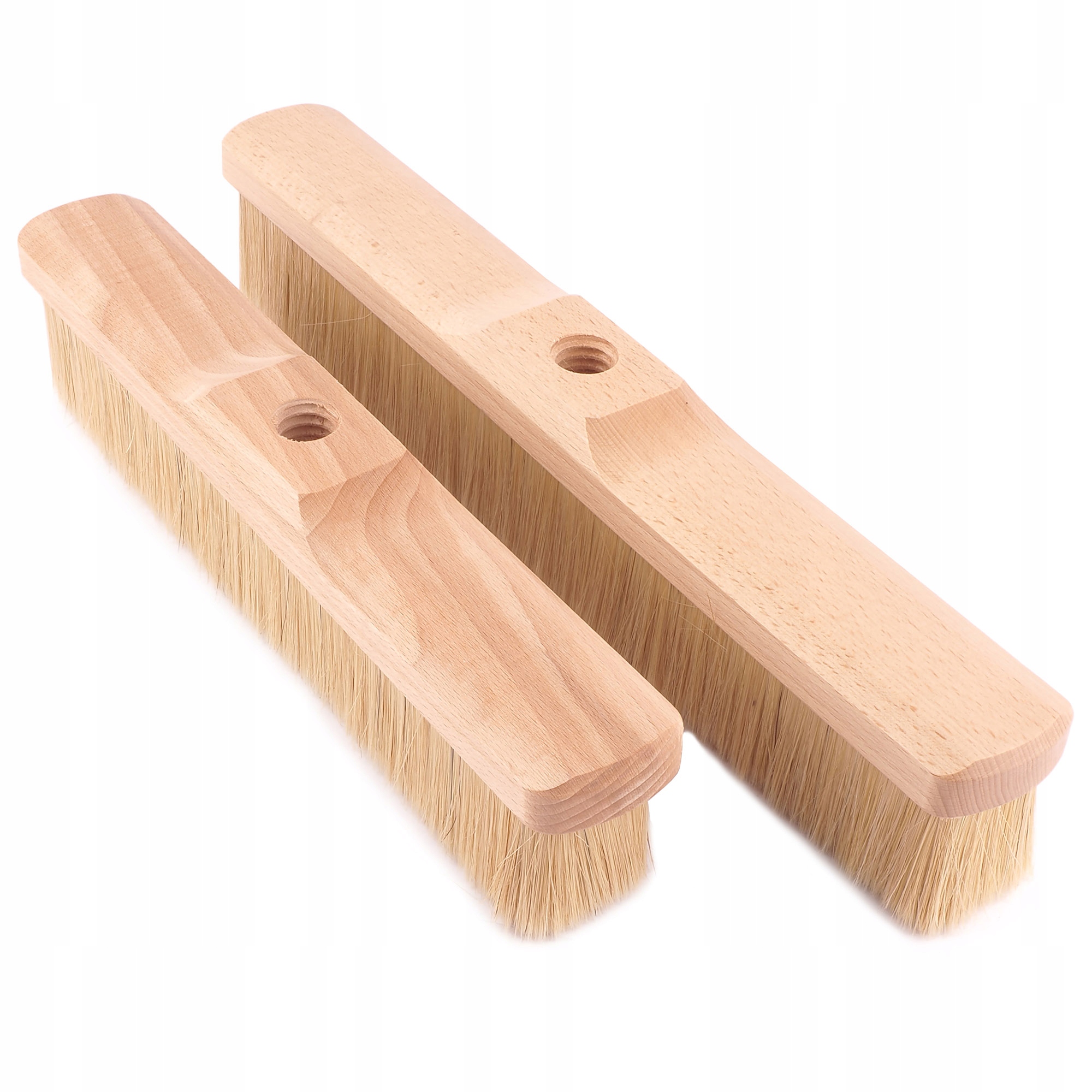 Польська підмітальна машина з натуральною м'якою щетиною, дерев'яною рамою та отвором для кріплення палиці. Він залишається жорстким і стійким до зношування.
