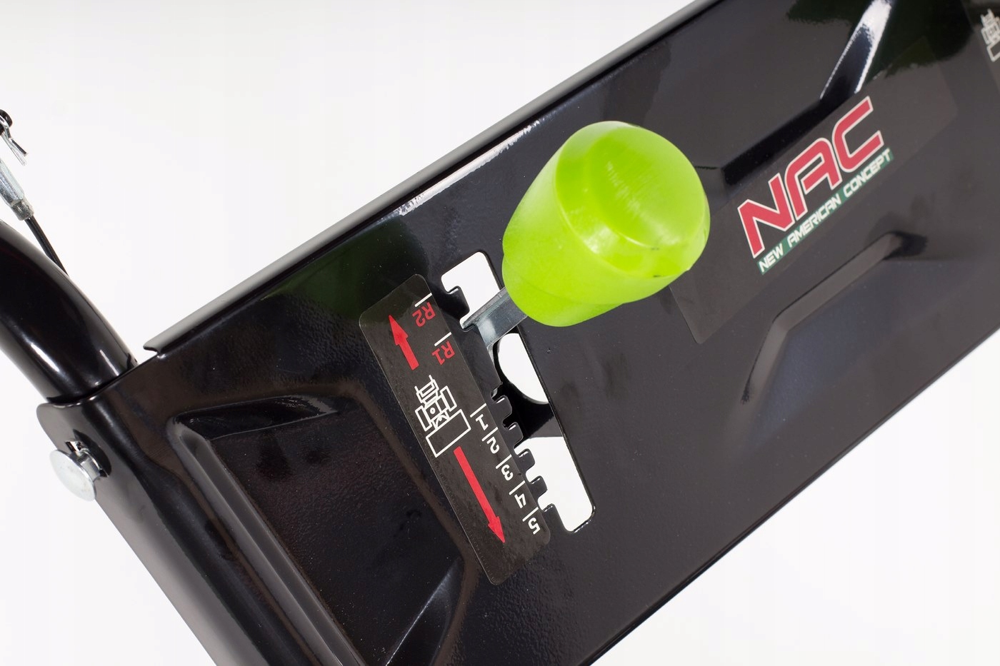 Бензинова підмітальна машина NAC SWP60-196L-KC оснащена функцією регулювання кута підмітання (15° в кожному напрямку). Робочий кут змінюється за допомогою ергономічного важеля, який завжди під рукою оператора. Крім того, великі шини зі спеціальним протектором гарантують ідеальне зчеплення машини навіть на нерівній місцевості.
