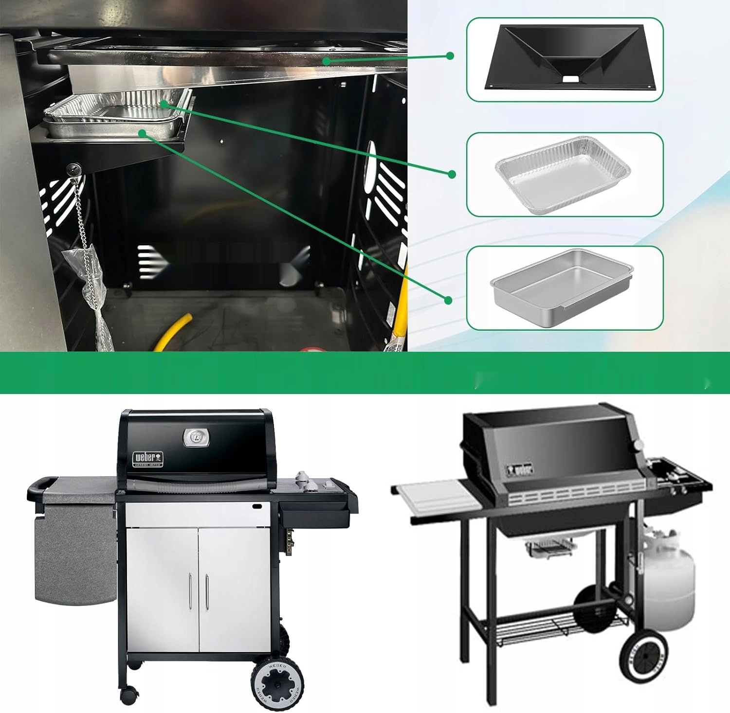 Гриль Гриль пропонує надійні запчастини для газових грилів із серії Weber Genesis II 300. Продукт складається з крапельного лотка та вставки для алюмінієвого лотка, розробленого спеціально для моделей Spirit та Genesis II, таких як E-310, S-310, E-315, E-325, E-330, E-335, S-335 та S-345.