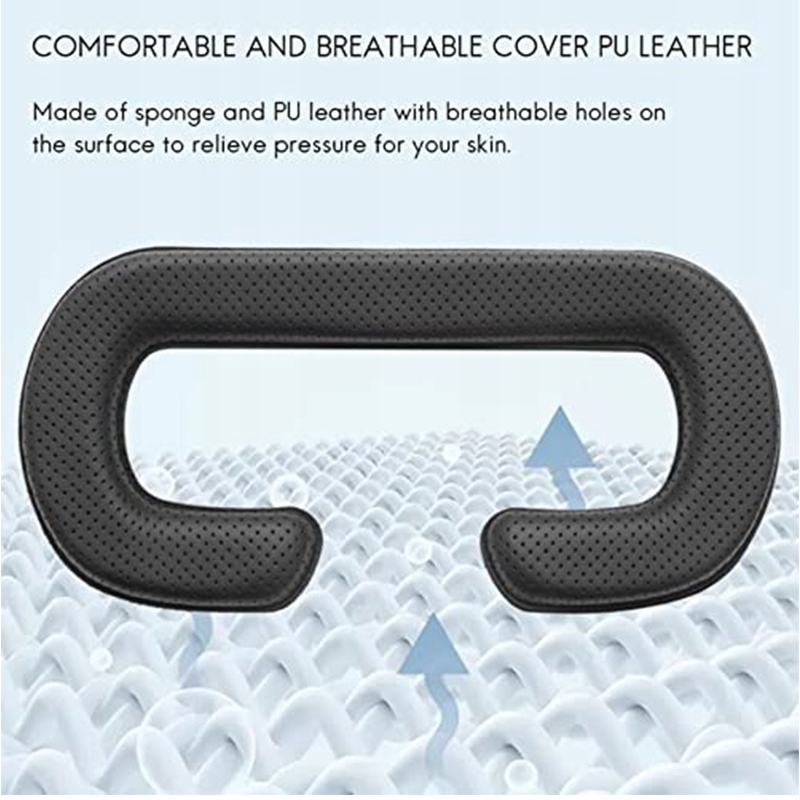 Більший комфорт: виготовлений із суміші м'якої поліуретанової шкіри та пінопласту, що пам’ятає форму. Ця змінна піна забезпечує винятковий комфорт під час довших сеансів VR, оскільки матеріали обережно пристосовуються до контурів обличчя, зняття точок тиску та зменшення втоми.