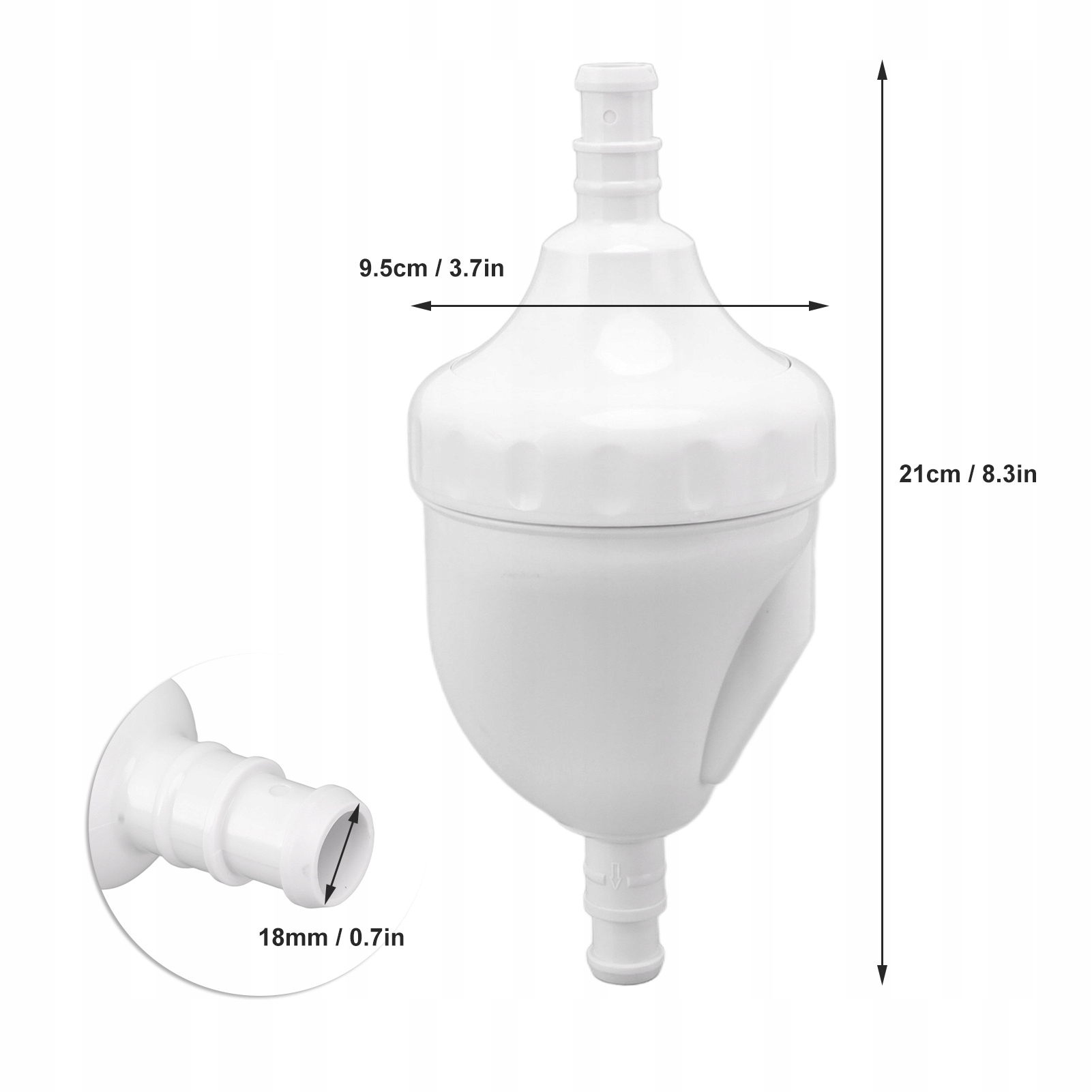 4. Розмір і калібр: Розмір цього зворотного клапана пулу становить 21x9,5 см, а зовнішній діаметр - 18 мм, вишукана майстерність, ефективно покращує потужність пилососа.