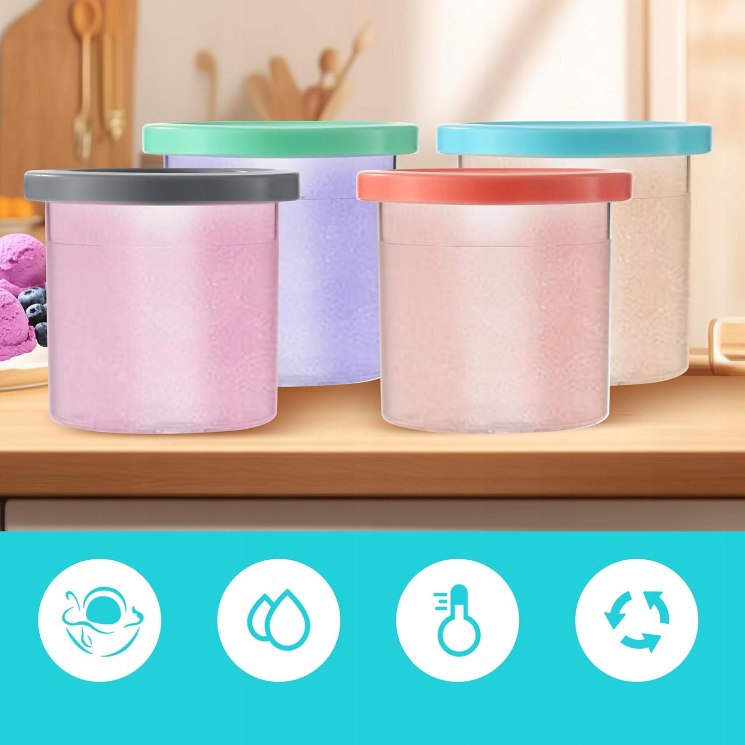 🍨🍨🍨【 щільно закрита кришка】: Кришка щільно закрита ефективно запобігає витоку або розливу вмісту чашки, тим самим ізолюючи запах у холодильнику та підтримуючи оригінальний смак морозива, йогурту або іншої замороженої їжі.