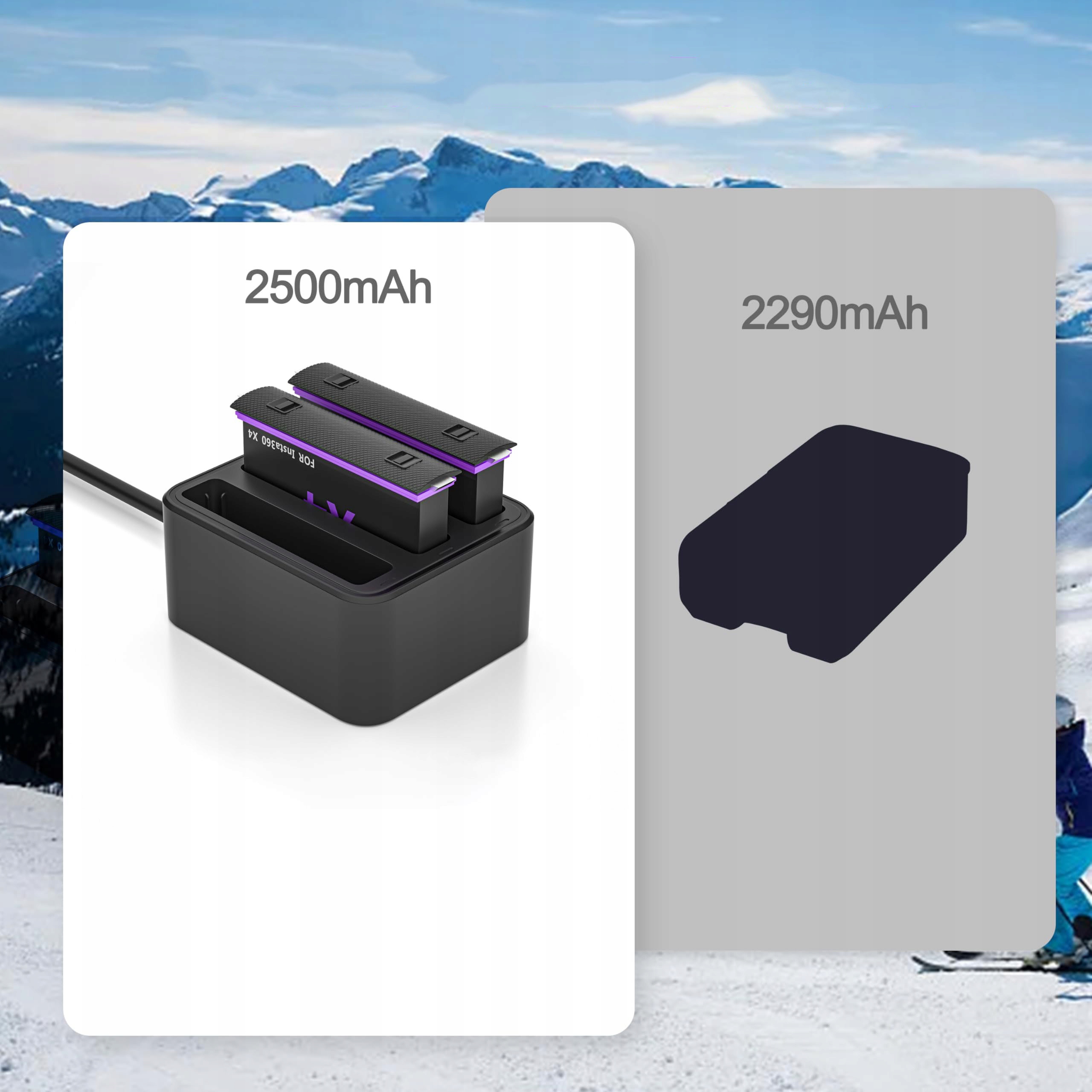 2 Insta360 x4 o батареї 2500 мАг забезпечують більш тривале використання камери для зйомки чудових моментів навколо вас, не впливаючи на пам'ять камери, таким чином забезпечуючи хороший захист камери.