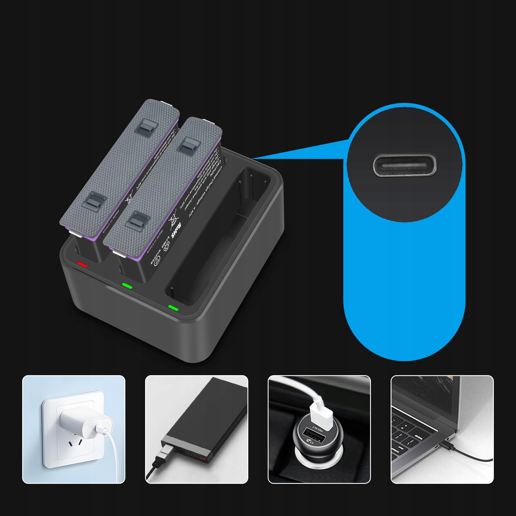 Зарядний пристрій акумулятора Insta360x4-це зарядний пристрій з трьома сокетами, розробленими спеціально для акумулятора Insta360x4, що дозволяє одночасно заряджати один, два або три акумулятори, використовуючи порт C-Charging