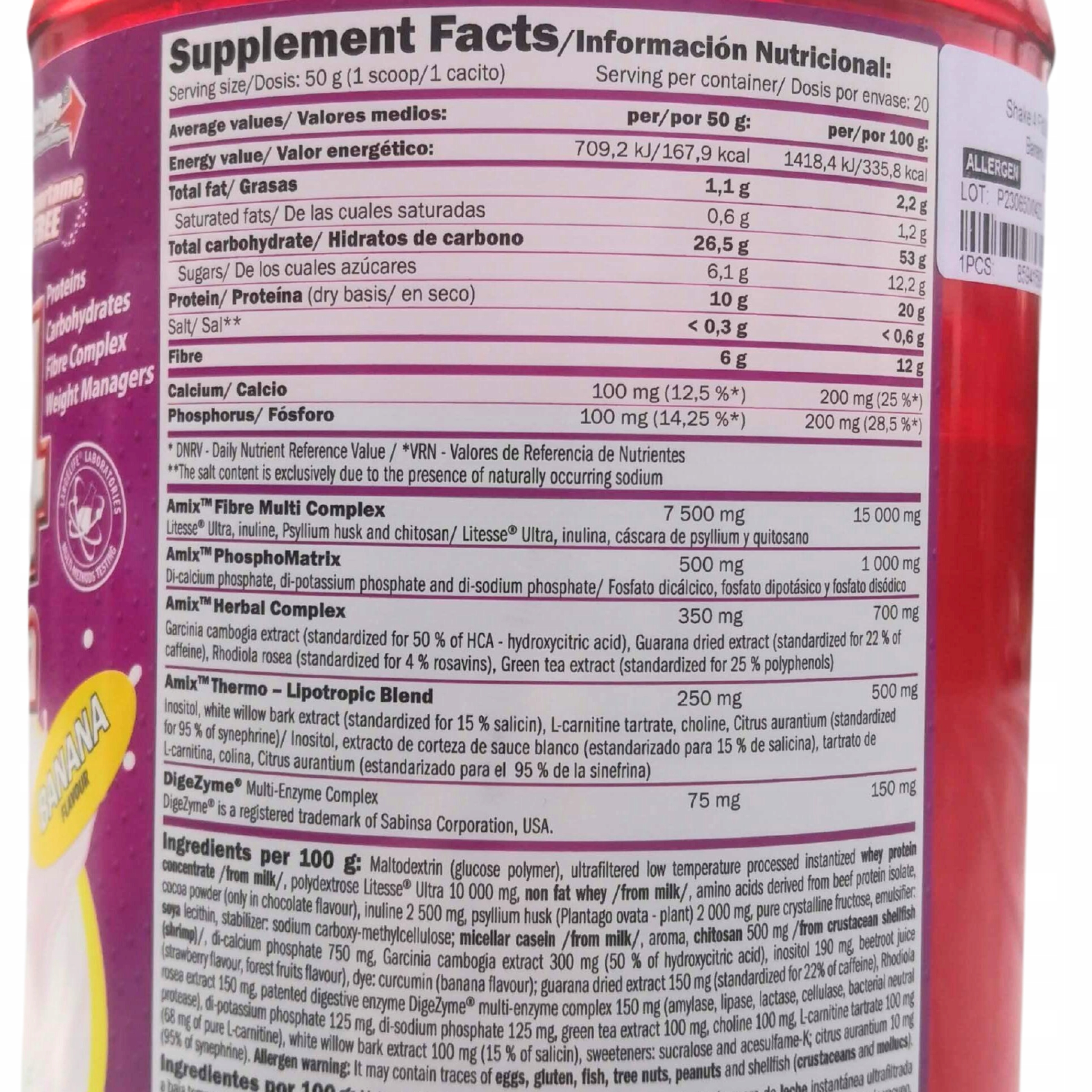 Shake4 Fit & Slim від Amix Nutrition - це смачна і легкозасвоювана заміна їжі. містить усі поживні речовини, необхідні для заміни їжі, оскільки вона забезпечує білки, вітаміни, мінерали, вуглеводи та клітковини.