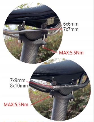 Структура затискача проходить через основу вуглецевого волокна та титанових гвинтів для захисту сідлової рейки та зменшення ваги.