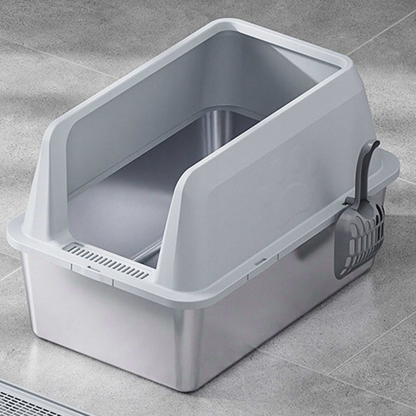 2. Суцільний матеріал: Побудований з нержавіючої сталі з високою довжиною, цей кішка сміття легко очищає і допомагає зменшити накопичення запаху, забезпечуючи освіжаючий простір для вашої кішки.