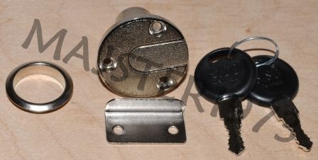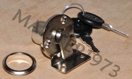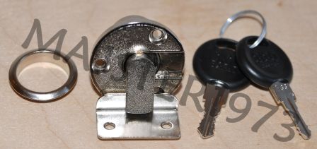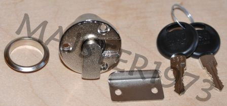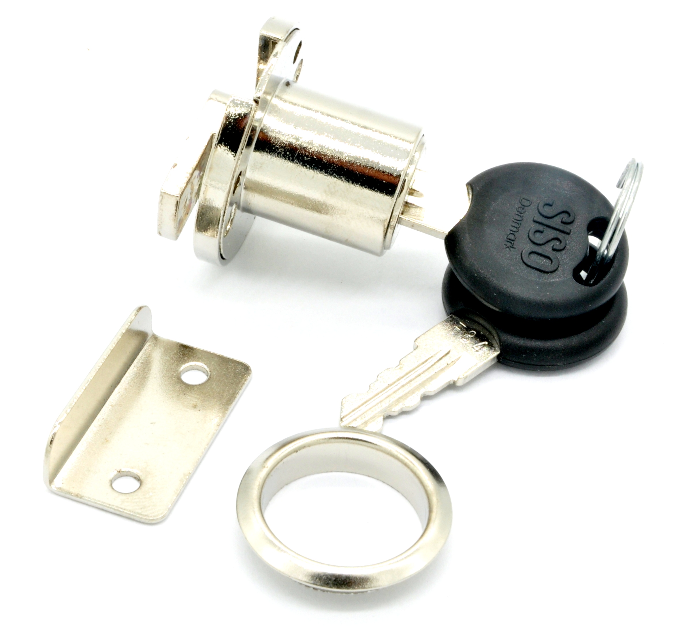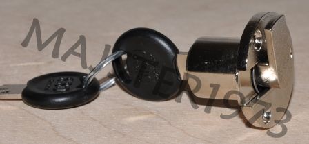 Опис: якісний замок з нікельованого металу. Має 2 ключа, закриваючий елемент - металевий язичок. Лицьова частина затвора в закритому положенні вдавлена, а у відкритому – висунута. Щоб закрити замок, вставте ключ в циліндр, натисніть на нього і поверніть вліво. Завдяки своїй конструкції замок використовується в дверях, стулках, шухлядах тощо. Його можна використовувати як у дерев'яних, так і в металевих конструкціях.
