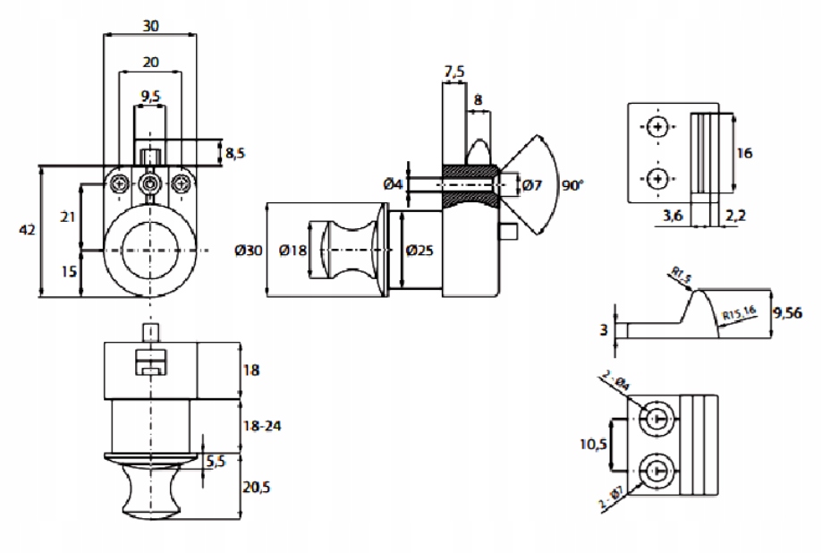 Опис: замок-застібка з чорного пластику. Ручка (а заодно і натискна кнопка) виготовлена зі сплаву цинку в кольорі сатин (матове срібло). Використовується в шафах, роздягальнях, шафах в караванах, кораблях, літаках і кемперах. Замок оснащений замком, який закриває двері (натиснута ручка-кнопка) і після натискання кнопки замок функціонує як клямка, тобто двері можна закрити і відкрити, тримаючись за ручку-засув. Закрийте двері, натисніть кнопку, і двері заблокуються, натисніть кнопку, потягніть її, і двері відчиняться.