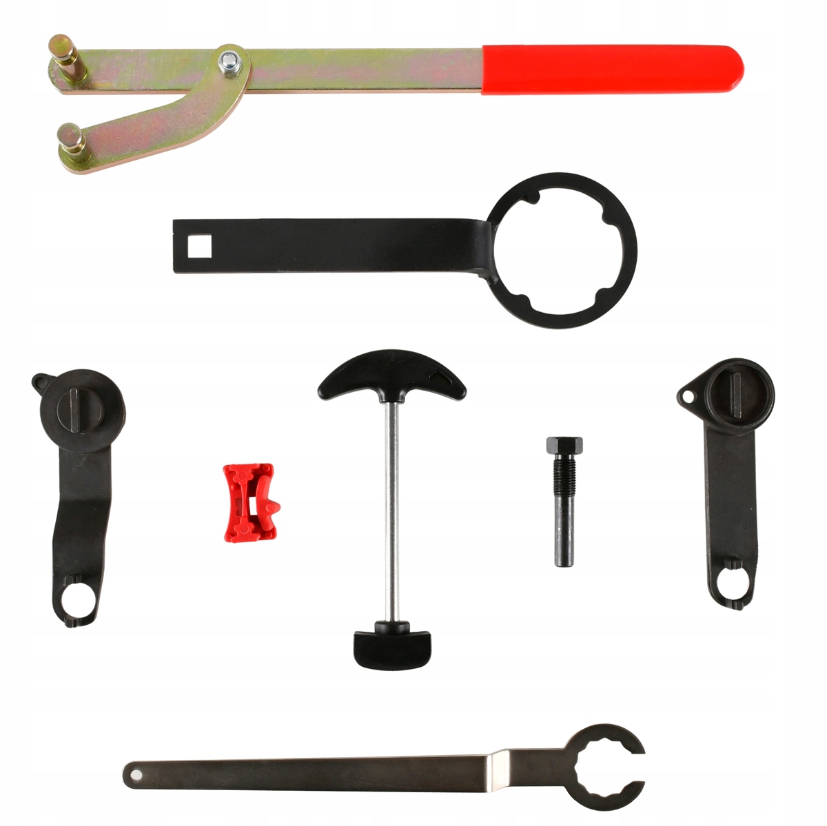 Набір включає замок колінчастого вала, приладдя для перегляду, натягувач ременя, оправку вала, інструмент для блокування передач розподільного вала