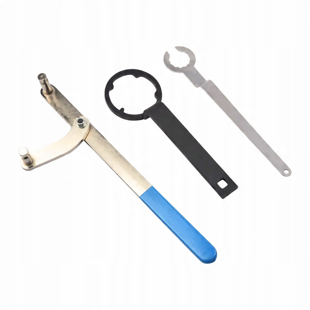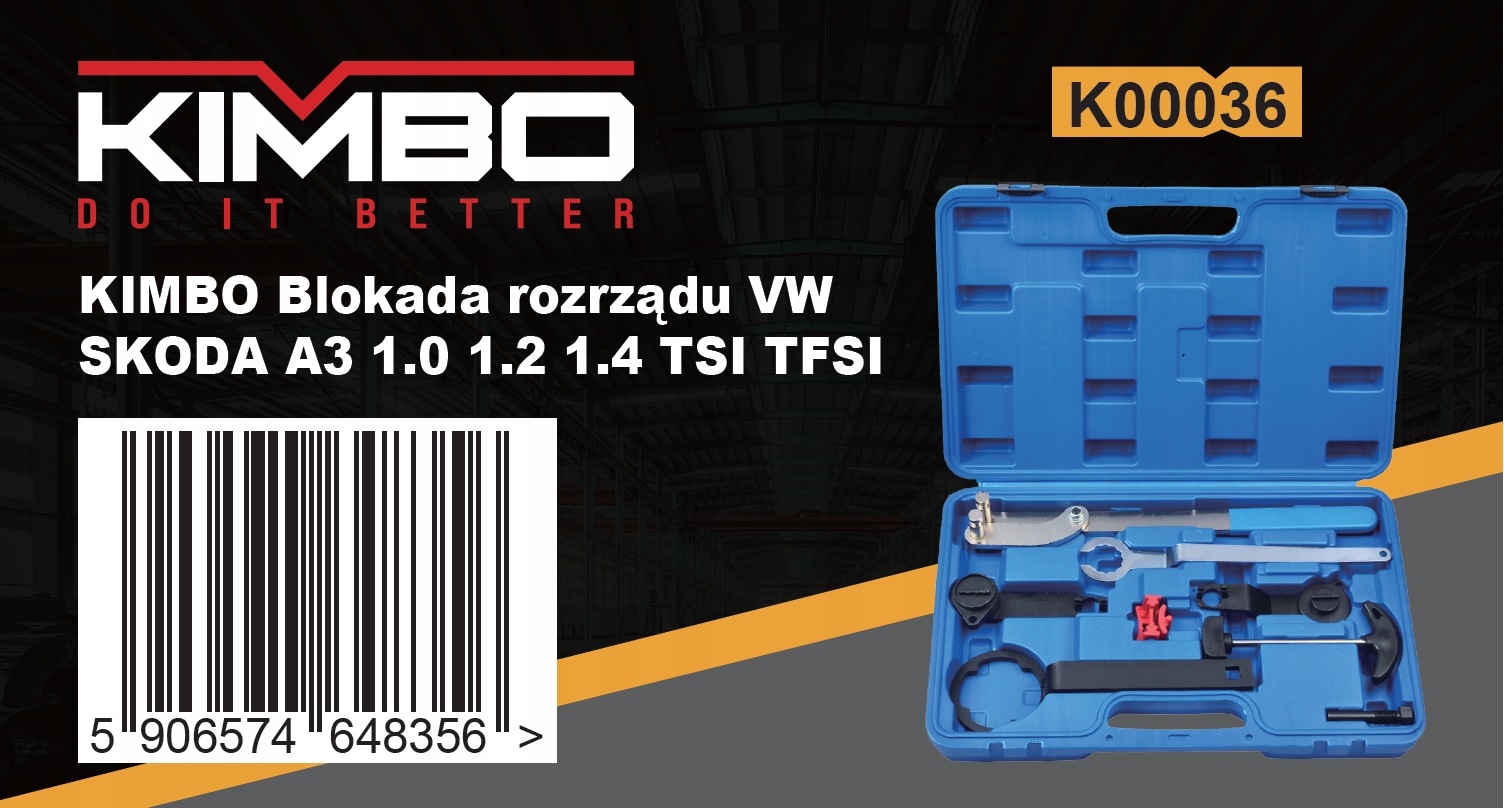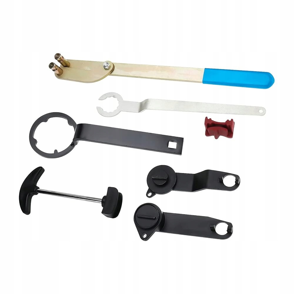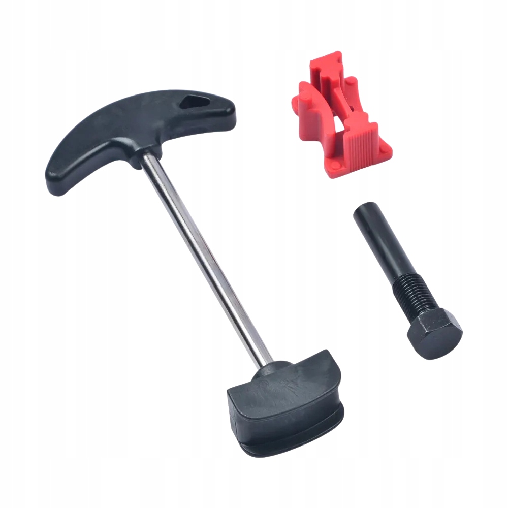 встановлено для блокування та встановлення часу в малоасштабних бензинових двигунах VW, Skoda Citigo, MII з 3,0-літровим 3-циліндровим двигуном. Налаштування блокування та часу при заміні ременя в двигунах TSI/TFSI/TGI 1,2/1.4 4-циліндр. Замок колінчастого вала, герметична передача, натягувач ременя, оправка валу, інструмент для блокування передачі розподільного вала