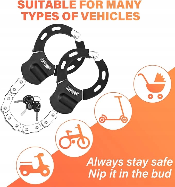 М'яка силіконова поверхня: замкова поверхня покрита м'яким силіконом для більшої зручності захоплення, ефективно запобігає корозії та захищає від іржі та подряпин, а також запобігає пошкодженню рами вашого скутера чи велосипеда.