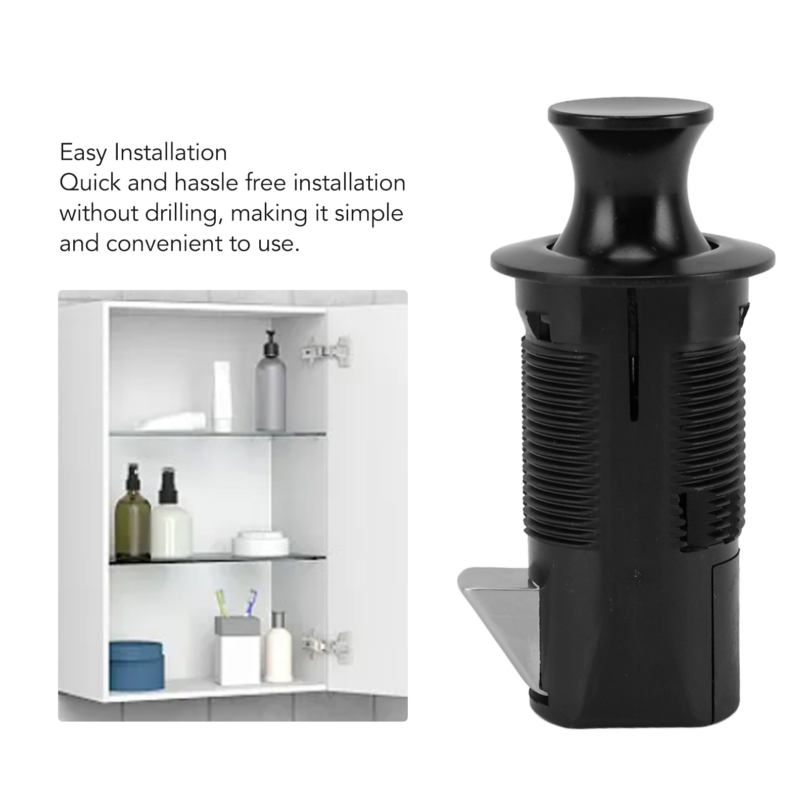 2. Надійна конструкція: цей замок шафи з механізмом «натисніть, щоб відкрити» запобігає випадковому відкриттю, захищаючи дітей і домашніх тварин.