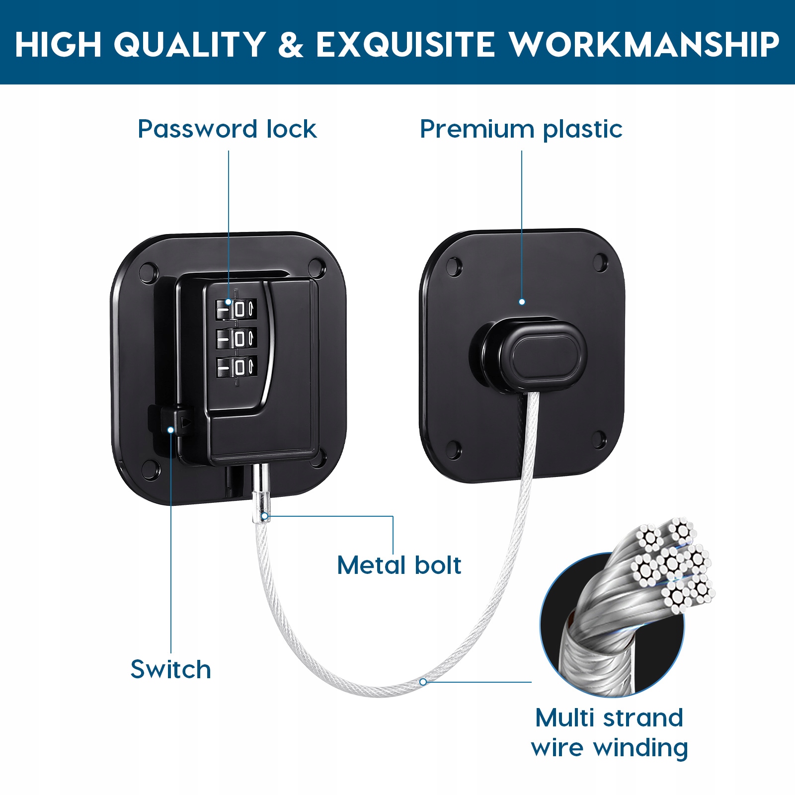 ✅Він виготовлений з якісних матеріалів і може використовуватися протягом тривалого часу. Дверний або віконний замок можна використовувати як замок дверей холодильника, шафи, замок шухляди, віконний замок, замок лотка для принтера, замок ящика для інструментів і так далі, він може запобігти дітям відкривати вікна окремо тощо. Цей кодовий замок має самостійну функцію. -клейка конструкція, якою зручно користуватися.