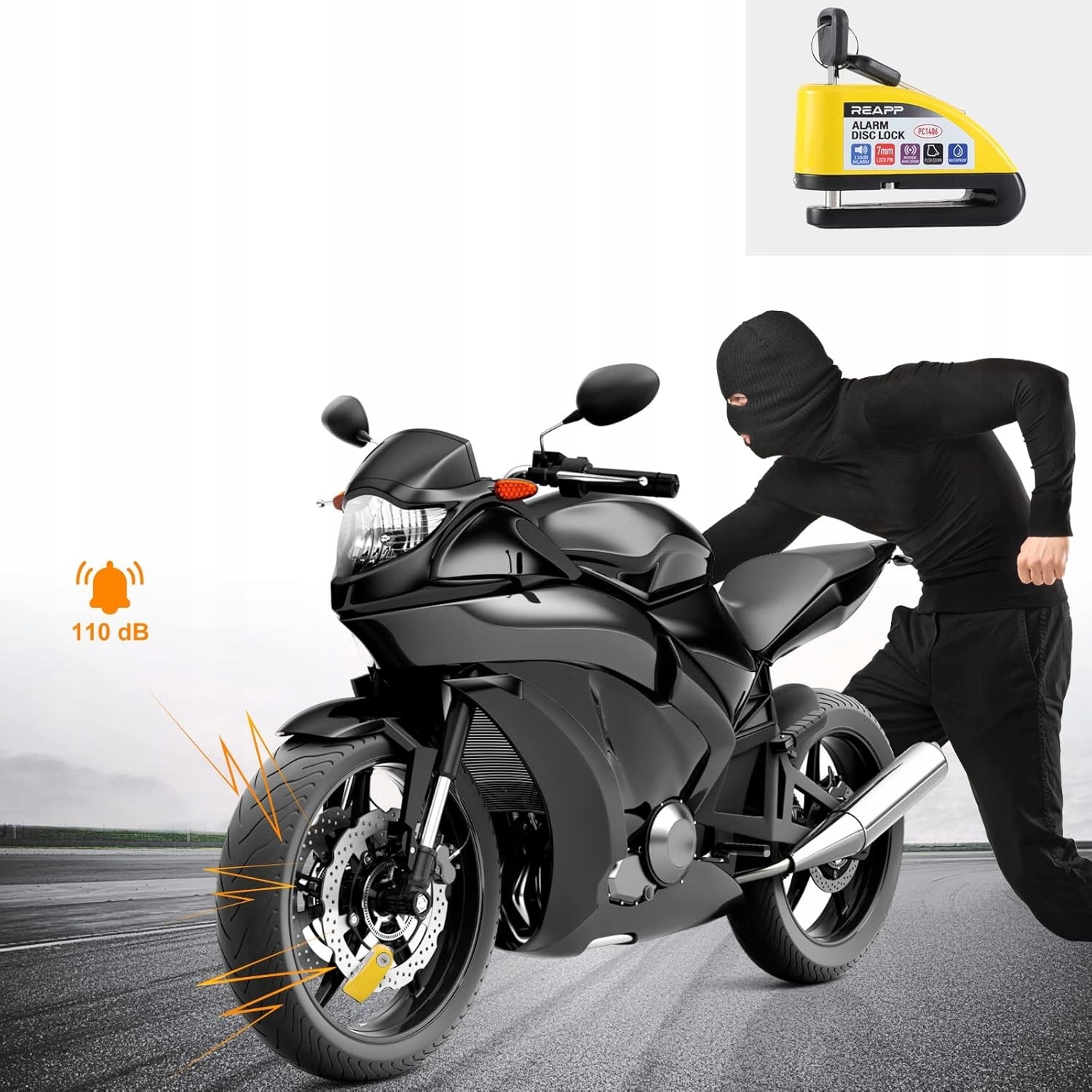 ✅REAPP -замикання гальмівного диска є обов'язковим положенням для захисту мотоцикла та велосипедів у кімнатах та зовні. Він оснащений побудованим чутливим датчиком, як тільки він виявляє вібрації або рух, випромінює безперервну тривогу 110 дБ, щоб зупинити всіх злодіїв, які намагаються перемістити транспортні засоби або зламати блискавку.