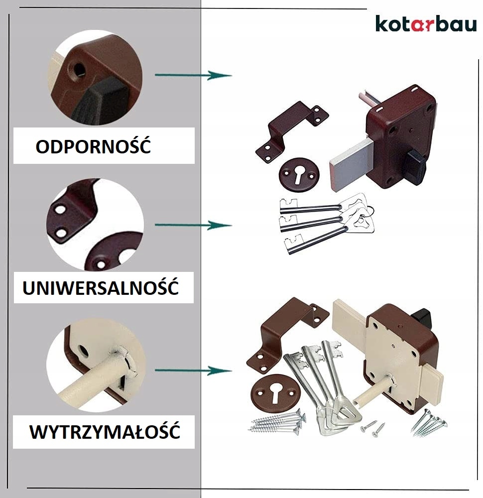 Вибір матеріалів, з яких він виготовлений, гарантує довгий термін служби замка. Сировина, з якої він виготовлений, робить продукт стійким до погодних умов. Може використовуватися як всередині, так і на вулиці.
