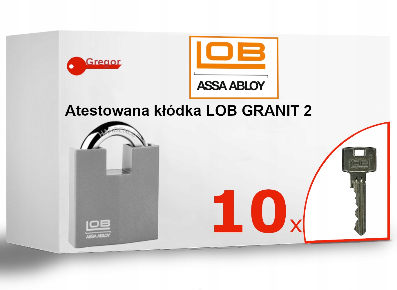 ЗАТВЕРДЖЕНИЙ ЗАМОК LOB GRANIT НА 2 ЯКІ З ЗАЩІЛКОЮ + 10 КЛЮЧІВ