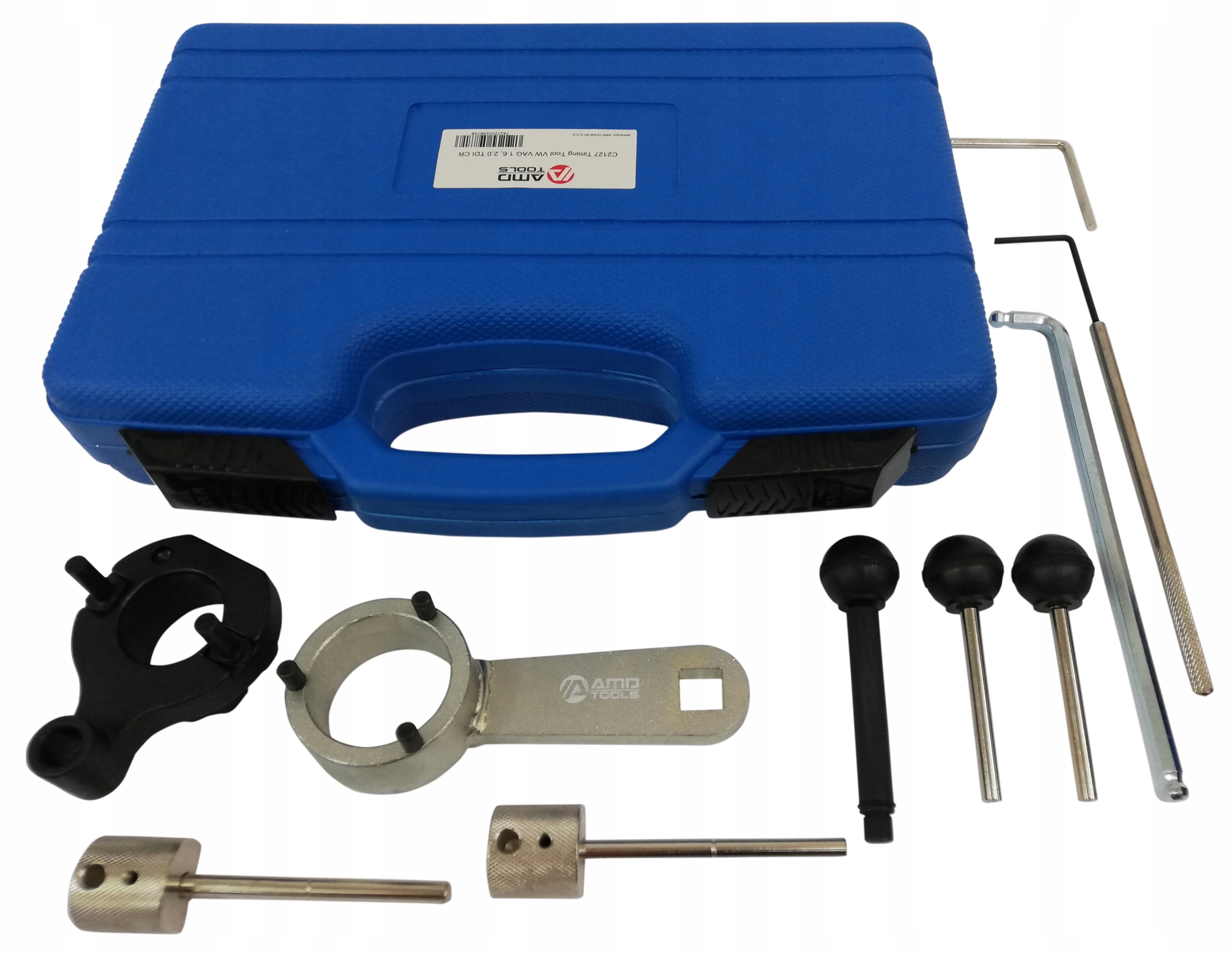 Набір інструментів AMD призначений для фіксації колінчастого вала, шківа розподільного вала та паливного насоса у відповідному положенні для демонтажу та заміни ременя або розподільного вала.
