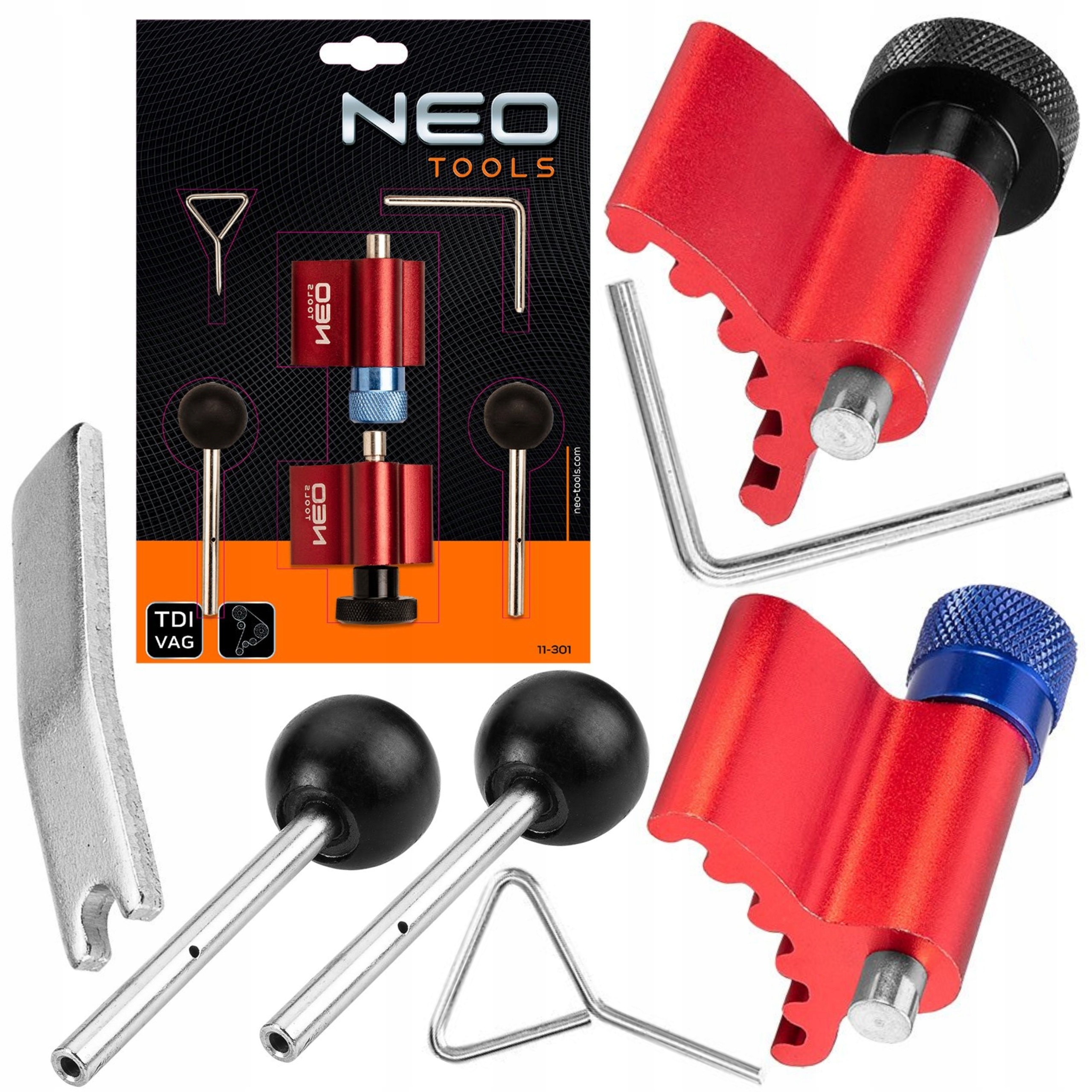 Замок ГРМ для дизельних двигунів VAG - набір 6 шт 11-301, NEO TOOLS Набір для блокування ГРМ в автомобілях VAG. У комплект входять елементи для блокування ГРМ в бензинових і дизельних двигунах. Надає основні інструменти для налаштування та блокування двигуна.