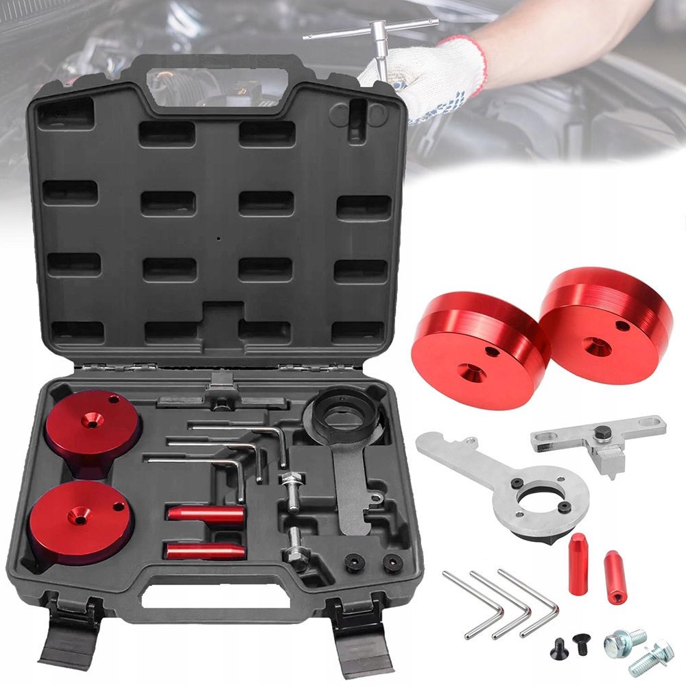 Набір містить необхідні інструменти для вирівнювання колінчастого вала, блокування маховика та встановлення ременя, щоб гарантувати, що ремінь ГРМ можна зняти та встановити, не пошкодивши його.