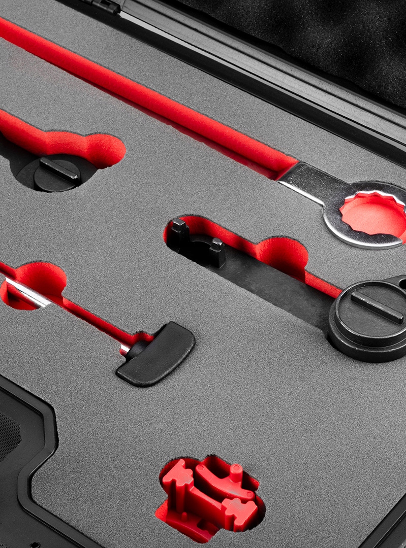 Набір ГРМ для бензинових і дизельних двигунів NEO (арт. № 11-338) - це набір інструментів для блокування ГРМ в автомобілях VAG. У комплект входять елементи для блокування ГРМ в бензинових і дизельних двигунах. Надає основні інструменти для налаштування та блокування двигуна. Набір упакований у валізу.