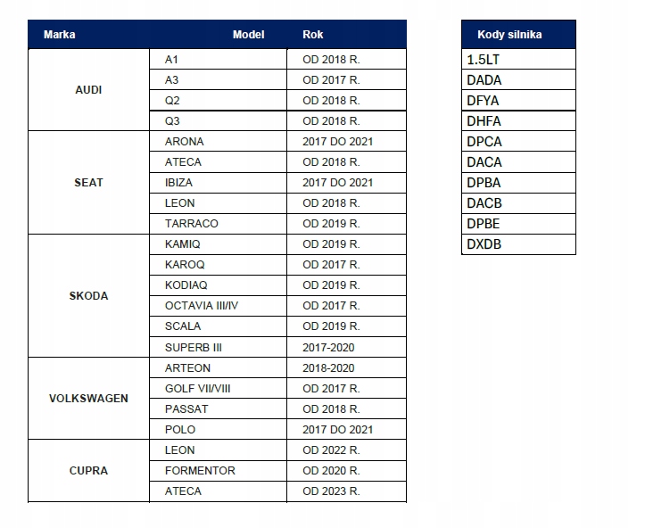 ✅ 1.5 TFSI DACA, DACB, DADA, DFYA, DPCA, DPBA, DPBE