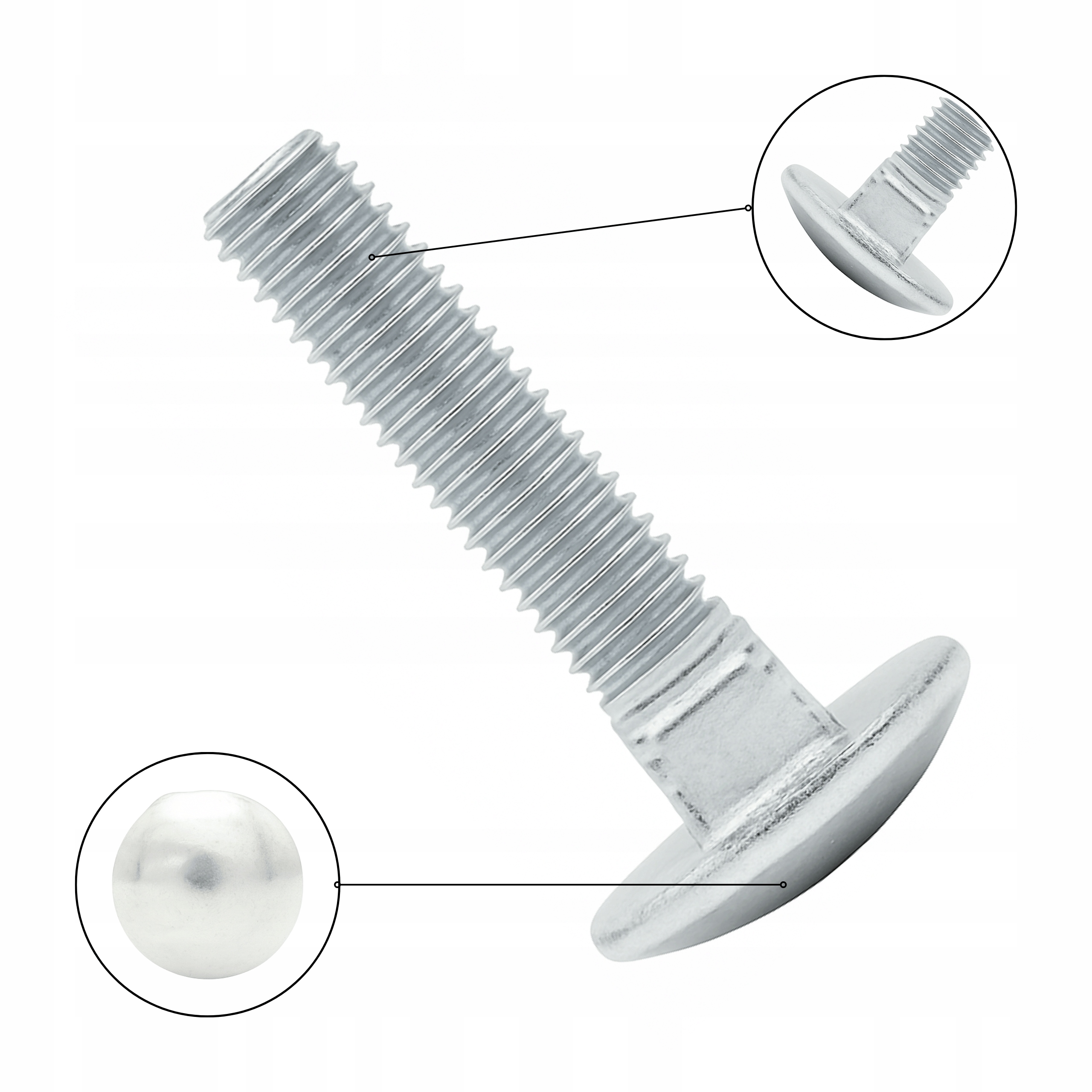 Грибовий болт з ударом. Виготовлений у стандарті DIN 603. Клас витривалості форми 4.8. Виготовлений з високоякісної сталі.