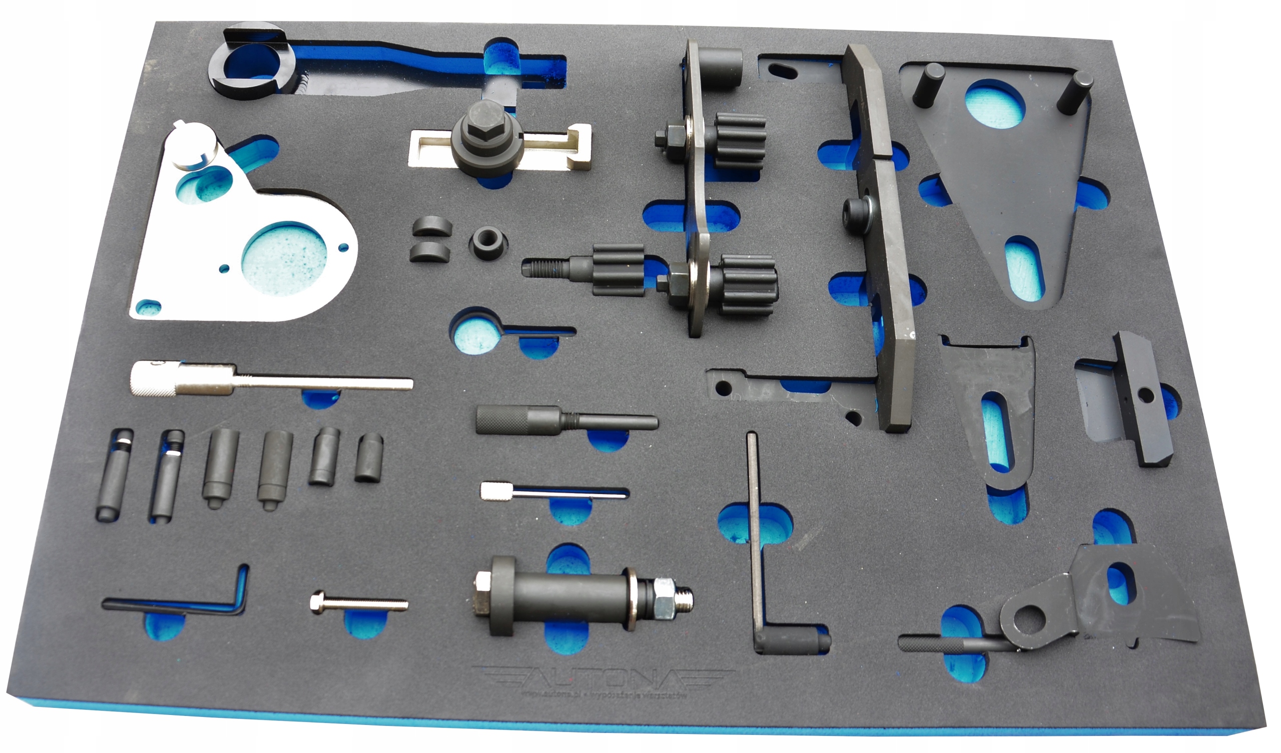 Набір призначений для блокування та налаштування ГРМ у малогабаритних двигунах бензинові автомобілі VW up, Skoda Citigo, Seat Mii з 3-циліндровим двигуном 1.0L. Також використовується для блокування та налаштування ГРМ при заміні ременя в 4-циліндрових двигунах 1.2/1.4 TSI/TFSI/TGI. Набір включає, серед іншого: блокування колінчастого вала, зубчаста передача, натяжний шків, штифт вала.