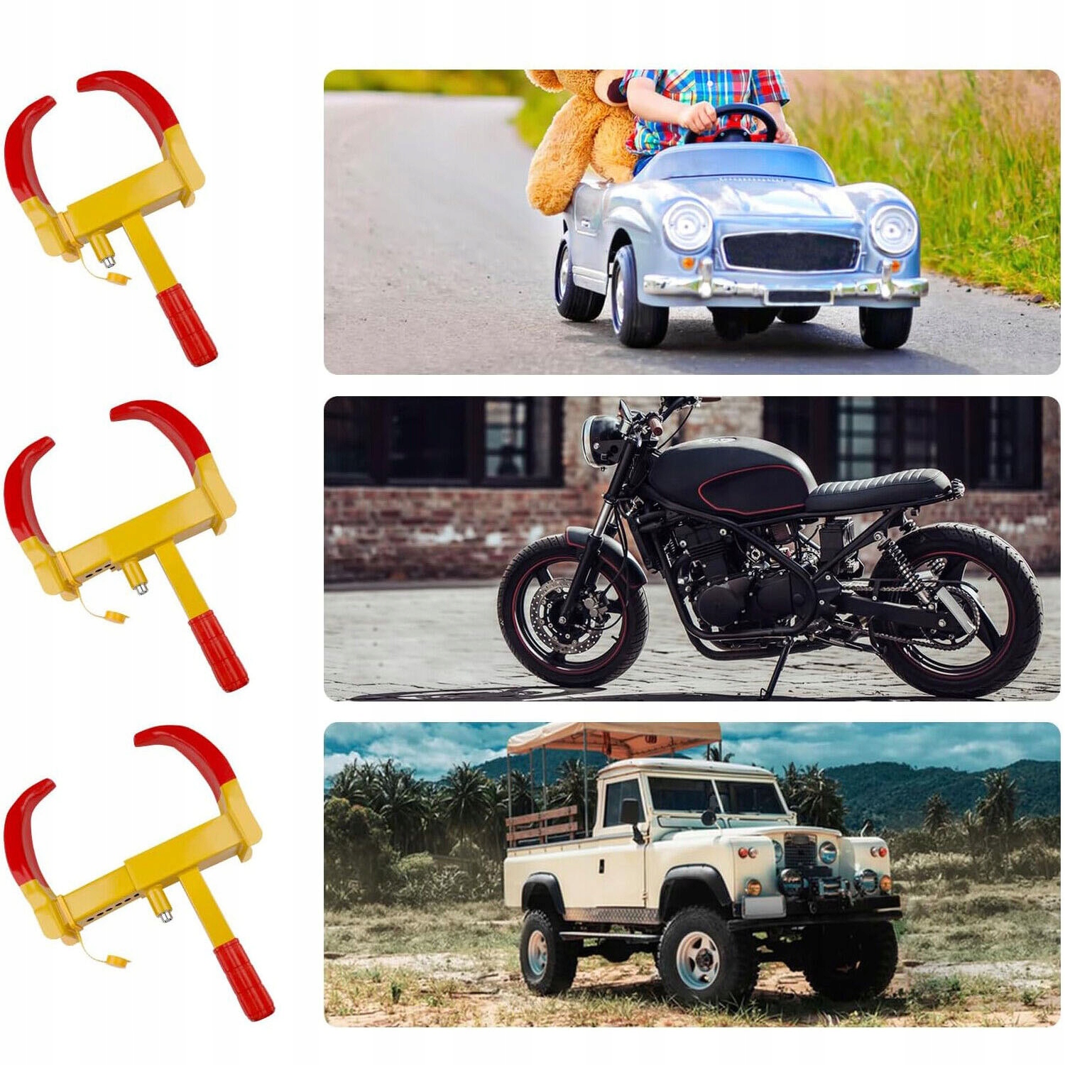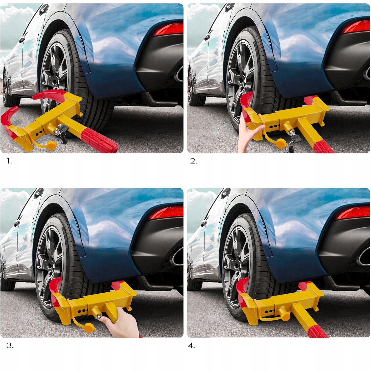 🚗 Розроблено на довгий термін служби:Цей міцний замок для коліс зроблено суцільної зварної сталевої конструкції. У набір також входять 2 гайкові ключі, водонепроникний ковпачок і м’яке ПВХ-покриття для запобігання подряпин.