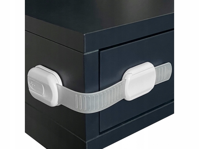 - Дуже простий монтаж і демонтаж - Замок потрібно приклеїти так, щоб одна його частина була на дверях, а інша на стінці шафи або ящика.