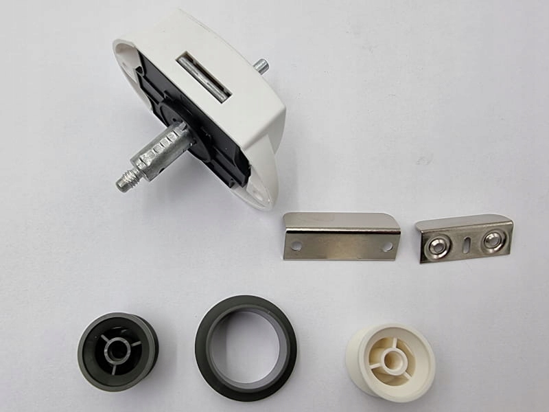- двосторонній білий натискний замок, так званий накладний замок, з отворами для двох розділених стрижнів 6 мм,