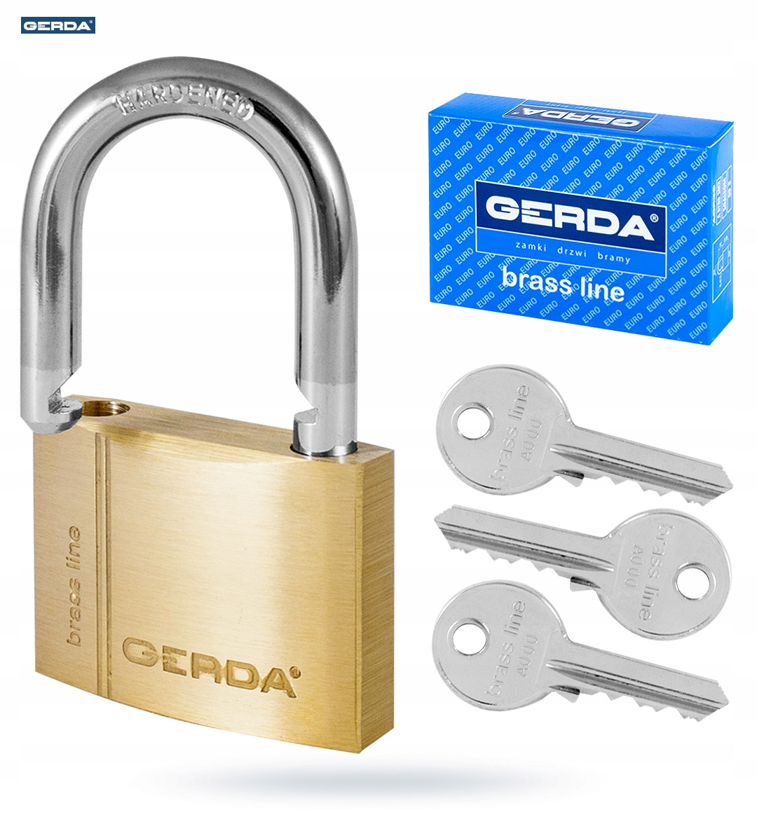 Латунний замок є частиною GERDA BRASS LINE. Замок навісний призначений для загального користування та безпеки майна. Підвищена стійкість до корозії робить його ідеальним для присадибних ділянок, садів або для закриття воріт і воріт. Навісний замок може бути виготовлений за одноключовою системою, що означає, що ми можемо відкрити 10 навісних замків лише одним ключем, це рішення значно полегшує переміщення, і немає необхідності носити з собою зв’язку ключів, достатньо лише одного для всіх замків з однаковим кодом ключа. Залежно від того, яку безпеку ви очікуєте, окрім навісних замків із дужкою та дужками, ми підготували для вас уніфіковані навісні замки в системі загального ключа, які доступні на наших аукціонах у наступних розмірах KMZ S30, KMZ S40, KMZ S50, KMZ S60