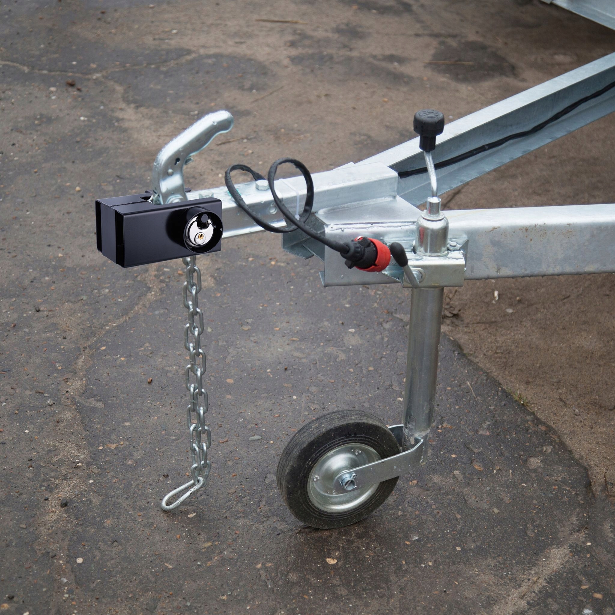 Ви берете свій караван у відпустку чи регулярно паркуєте автомобільний причіп у вільному доступі на відкритій дорозі? Тоді захистіть себе від крадіжки та закріпіть свій причіп за допомогою цього практичного замка зчіпного пристрою. Надійний замок для причепа підходить для всіх звичайних з’єднувачів для причепа та швидко та легко встановлюється. Для цього просто насуньте замок на зчіпно-зчіпний пристрій, закріпіть його гвинтом і заблокуйте дисковим замком.