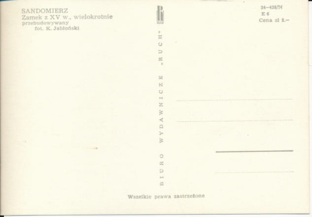 Заказывая «Замок Сандомиерз - 023849» данное изделие из «Центральная Польша» вы можете быть уверены, что после оформления заказа, доставки в Украину, вы получите именно то, что заказывали, в оговоренные сроки и европейского качества.