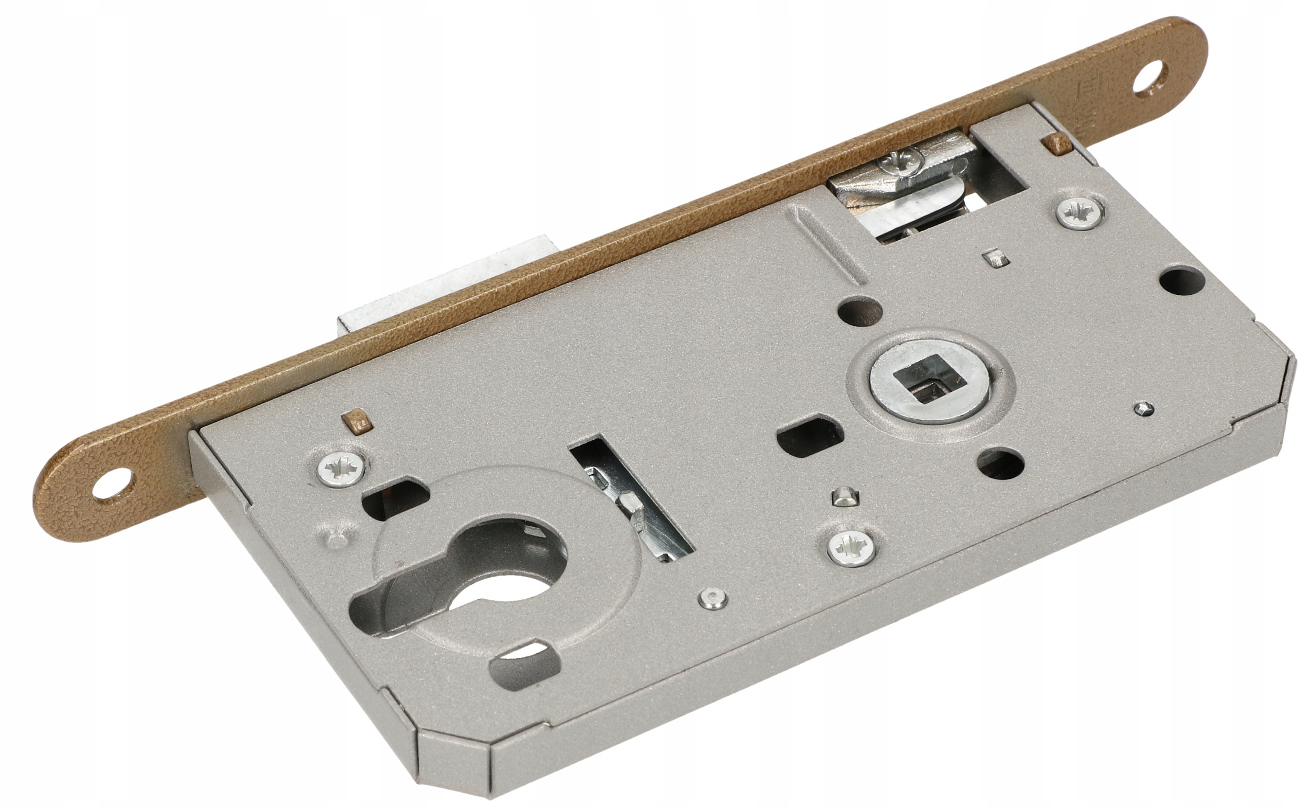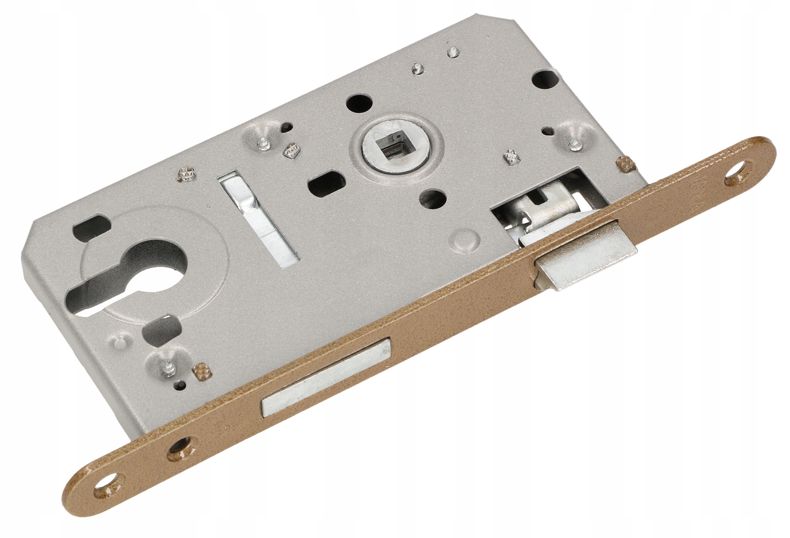 Пропозиція включає врізний замок і коробку з отворами для кріплення замка. Механізм замка універсальний, що полегшує установку як на праве, так і на ліве дверне полотно. У набір входить замок, запірка та необхідні кріпильні гвинти.