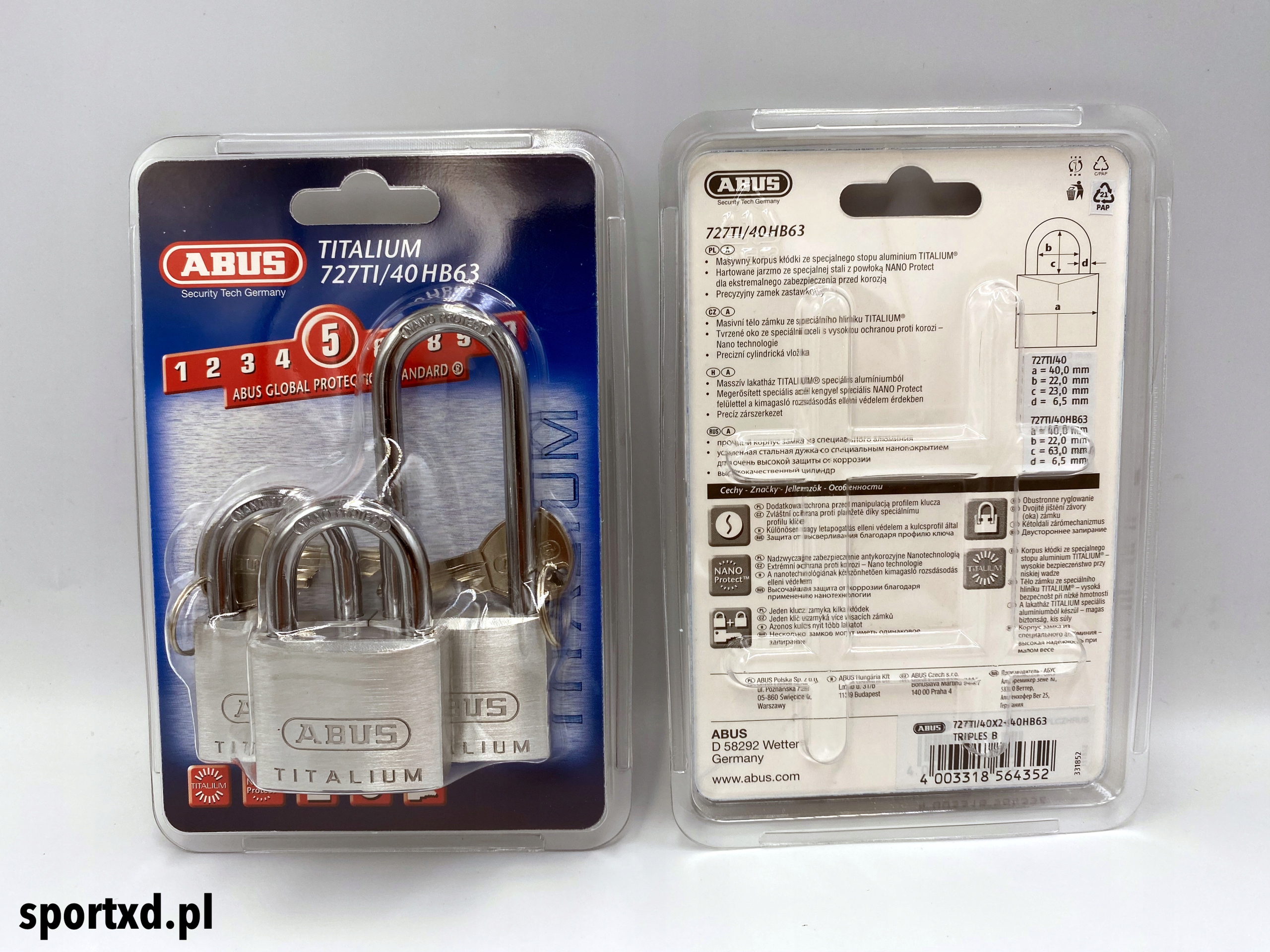 Замок висячий Titalium ABUS 2 x 727TI/40 +40HB63 Потрійний