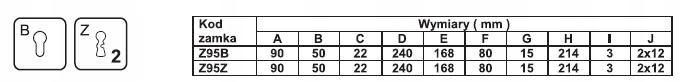 Замок врізний для дверей LOB 90/50, вставка Z95B